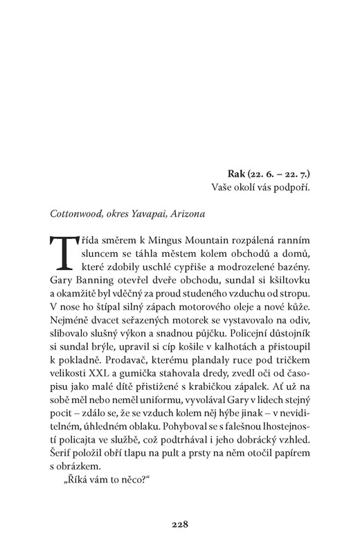Léto 2011. Desmond G. Blur se poté, co se stal novinářem a profesorem kriminologie, rozhodne opustit Chicago, aby se usadil v Arizoně. Stíny minulosti se ale znovu objeví, když mu cestu nečekaně zkříží Francouzka Lola Lombardová, jež hledá otce svých dvou dětí. Její manžel zmizel na Route 66 a zůstala po něm jediná stopa – zápisník, jenž by mohl vést k odhalení jednoho z nejhorších zločinců, jaké Amerika zná a který v létě roku 1966 projížděl městečkem Narcissa…