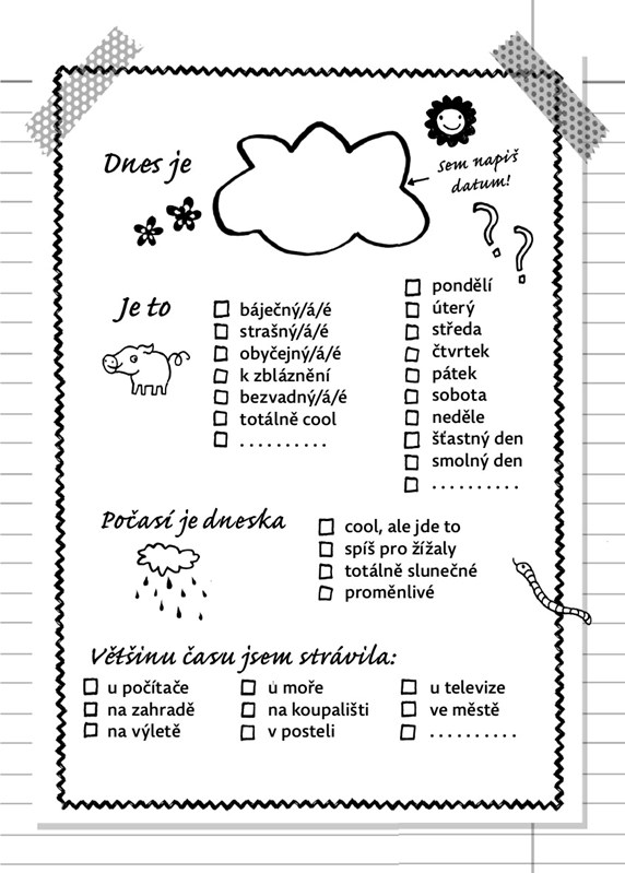 Najdeš v něm všechno, co od správného deníku očekáváš. Prostor na zápisky, kreslení, vlepování obrázků a fotek, a hlavně – spoustu vychytaných tipů na léto, díky kterým zažiješ ty nejlepší prázdniny svého života. Jsou tu i skvělé nápady na tvoření, focení, výrobu domácí zmrzliny a chytré rady, jak si přivydělat peníze…