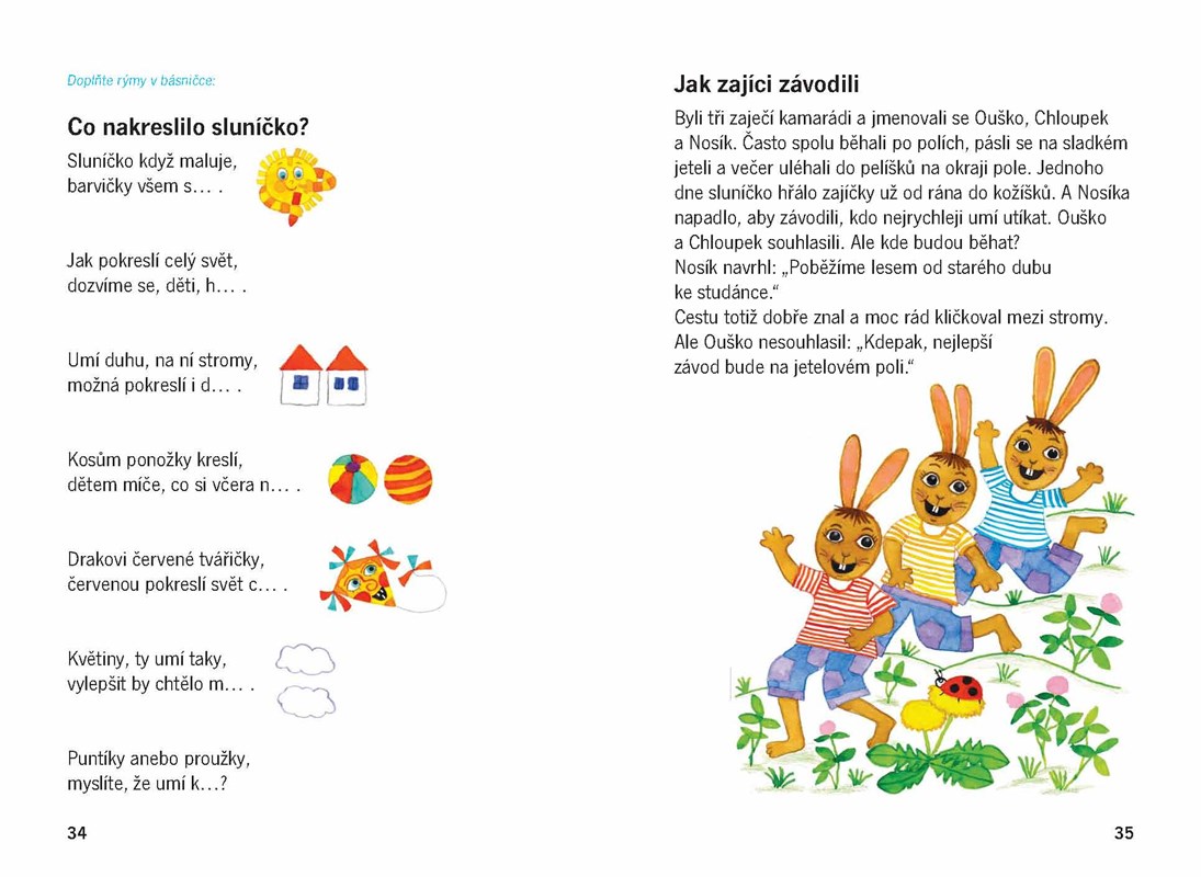 Pestrá knížka pohádek, říkanek, malovaného čtení a hádanek pro předškoláky i školáky.