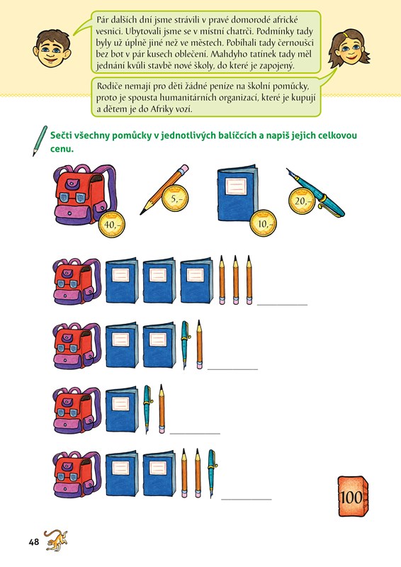V této publikaci si děti zábavnou formou procvičí základní učivo 2. třídy. Spolu s hlavními hrdiny prožijí dobrodružství u nás i v Africe a zároveň si zopakují český jazyk, matematiku i prvouku. V knize ale nenajdete klasická školní cvičení, děti se budou bavit u křížovek, doplňovaček, hádanek a dalších zábavných úloh, které jsou doplněny vtipnými ilustracemi. Všechna cvičení jsou navíc zapracována do poutavého příběhu, takže děti si procvičí znalosti získané v druhé třídě jednoduše a nenápadně. Návrat do školních lavic tak pro ně bude mnohem snazší.