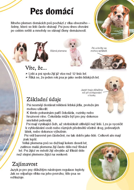 Na stránkách této krásné obrázkové encyklopedie najdeš spoustu informací o zvířatech, která můžeš chovat v domě nebo bytě jako domácí mazlíčky. Dozvíš se podrobnosti o jejich způsobu života, o potravě, chovu, péči o mláďata, ale také překvapivá a méně známá fakta a zajímavosti.