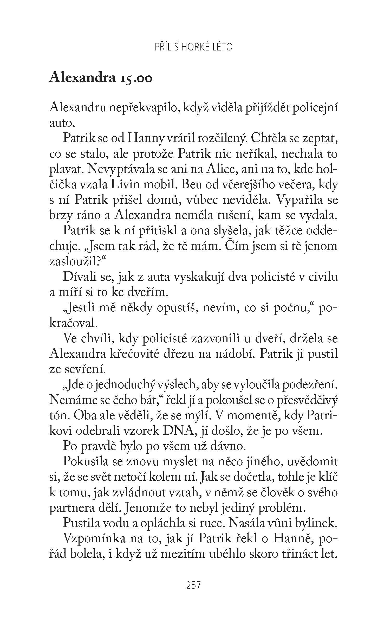 Reportérka krimizpráv Ellen Tammová odjíždí jednoho horkého srpnového dne ze Stockholmu domů. Poslední případ příliš rozčeřil vzpomínky na její minulost, a tak se teď vrací na místo, kde všechno začalo – tehdy osmiletá Ellen přišla za tragických okolností o sestru-dvojče. Cestou se dozvídá, že se nedaleko našlo tělo mrtvé ženy, kterou někdo ubil k smrti. Jenomže ženu podle všeho nikdo z místních neznal a její vražda otřese celým městečkem. Ellen začne po osudu záhadné ženy pátrat, čím víc se však případem zabývá, tím víc se vynořují její vlastní zasuté vzpomínky. A vychází najevo, že ve zdánlivě idylické vesničce není nic, jak se zdá – a to ani smrt Elleniny sestry.