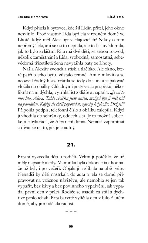 Markéta, které nikdo neřekne jinak než Rita, se dostala do velkých nesnází. Rozvedená a bez prostředků se s dětmi musela vrátit do rodného městečka, kde začala pracovat jako sestra v nedalekém Domově pro seniory. Podle její kamarádky Lídy tam ale není všechno v pořádku. Jenže než Ritě prozradí svá zjištění, je nalezena mrtvá. Dům, kde teď Rita s dětmi bydlí, je v podstatě na samotě. Přesto se tam mrazivou nocí ozývá dětský pláč. Jak je to možné? A proč Lída zemřela? Souvisí to s domovem pro seniory? Rita hledá odpovědi a samotné jí při tom jde o život.