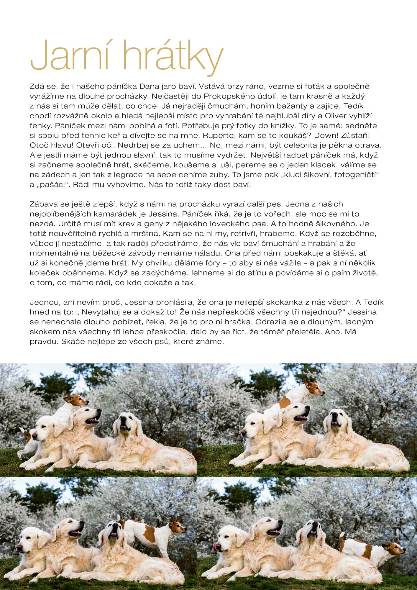 Psí smečka, to jsou zlatí retrívři Rupert, Tedík a Oliver. Přidejte k nim kluka Kryštofa a máte po celý rok zaděláno na všelijaká dobrodružství a rošťárny. Na jaře s našimi hrdiny navštívíte štěňátka a vyrazíte do zoo, v létě poznáte Psí ostrov, na podzim si zaplavete v listí a v zimě postavíte iglú. A to není zdaleka všechno, ba právě naopak… Kniha plná krásných fotografií a milých příběhů, volně navazující na předchozí knihu Já, zlatý retrívr, potěší všechny dětské i dospělé čtenáře.