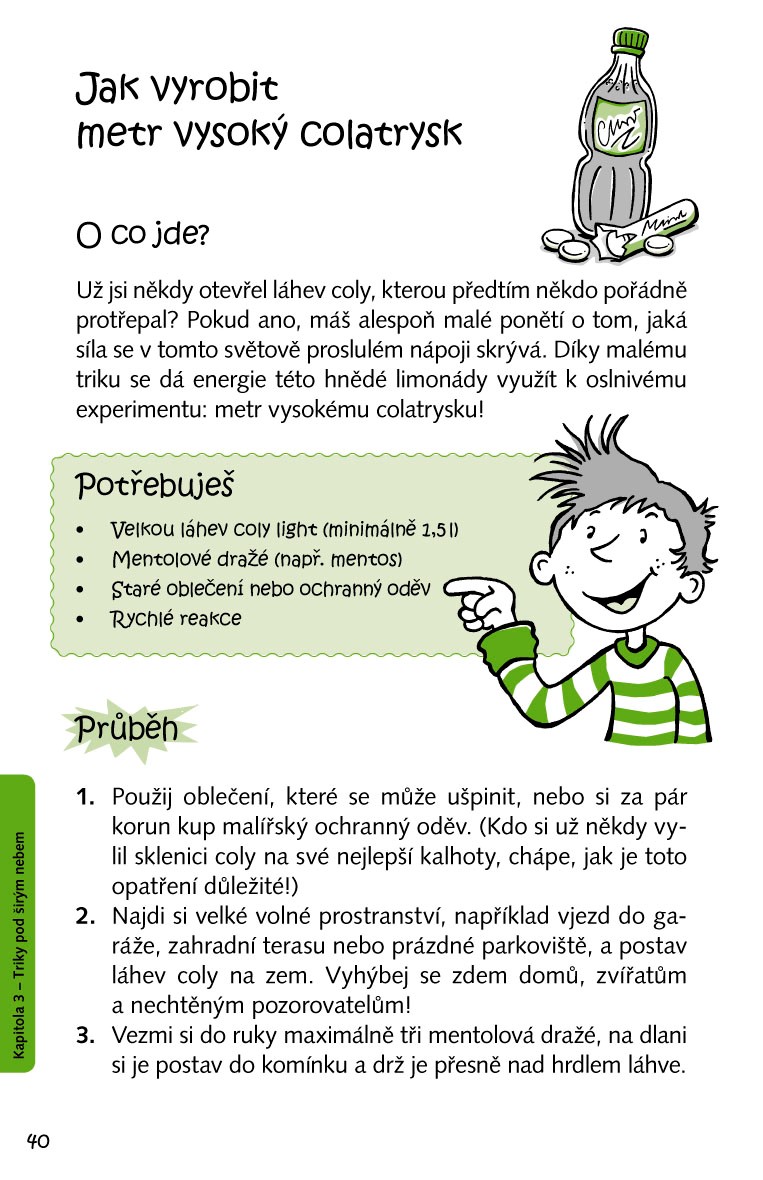 Oblafni své okolí bombastickými efekty jako jsou podomácku vyrobené blesky nebo explodující bomba z koláče. Nauč se, jak překvapit sněhovou bitvou v nejparnějším létě, jak uvařit špagety z březové kůry nebo jak se podívat na dno louže. Odhal skrytá tajemství fyziky, chemie, biologie a techniky.