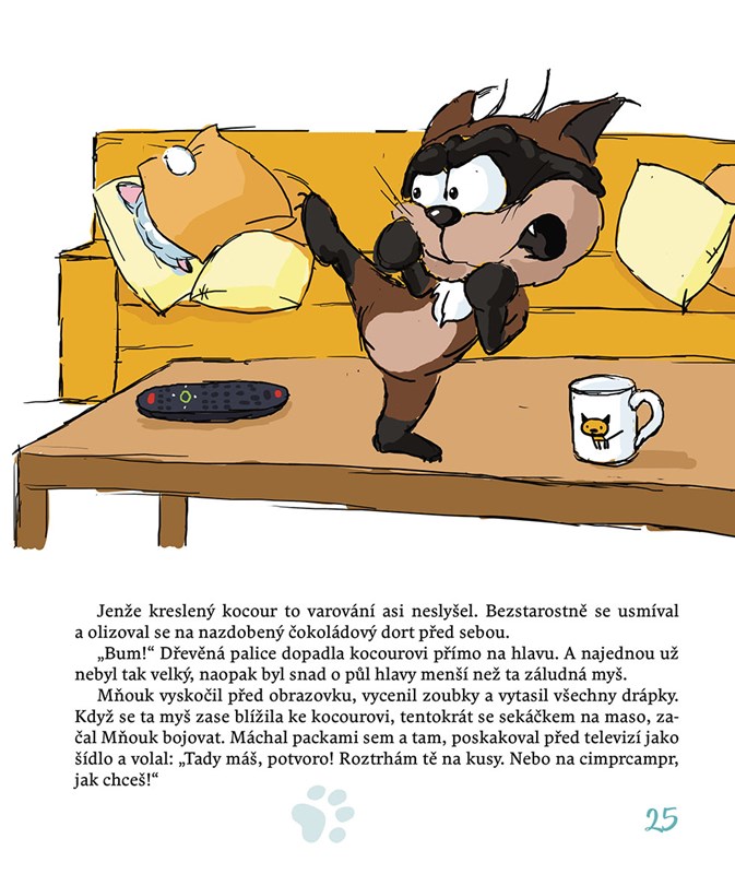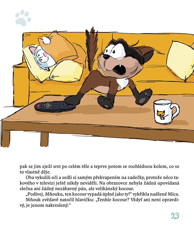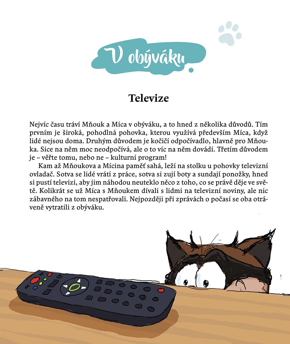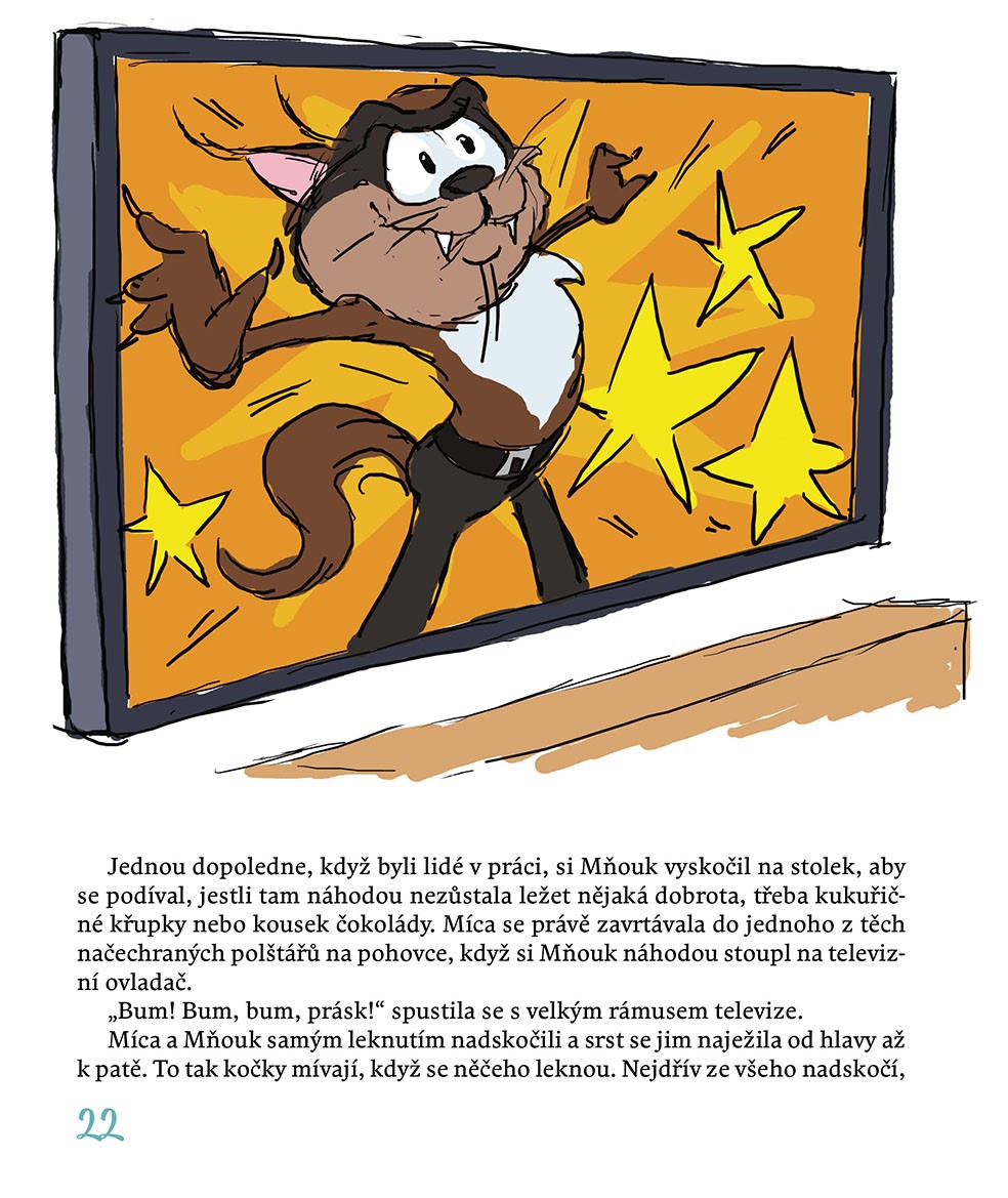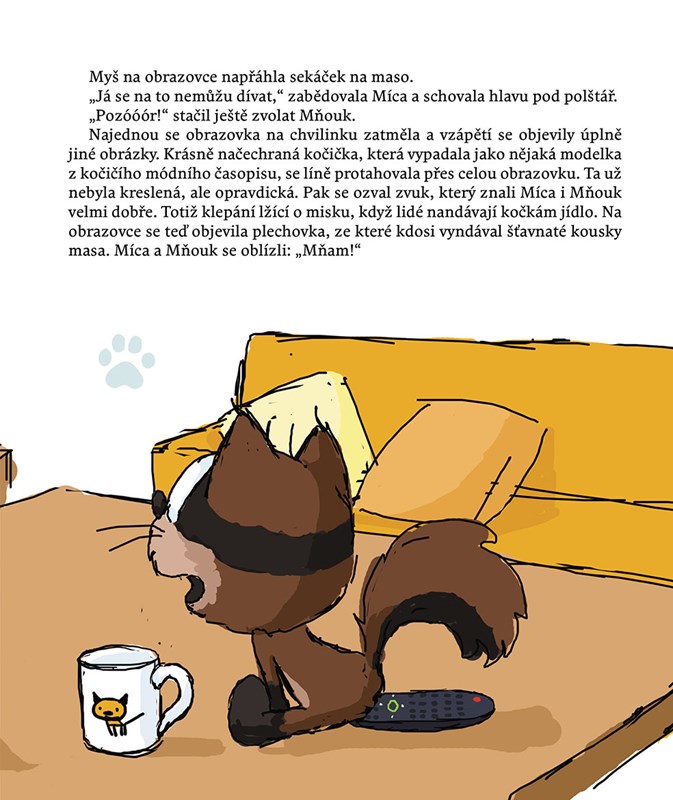 Mňouk je zvědavý kocourek, který strká své roztomilé fousky všude tam, kde tuší nějakou zábavu a dobrodružství. A Míca? Ta se ke každé lumpárně vždycky ráda přidá! Vždyť zážitky čekají na každém kroku: při lovu komárů v ložnici, při pádu do vany nebo při chytání ptáčků na balkoně. Tak proč toho nevyužít a malinko si nezazlobit!