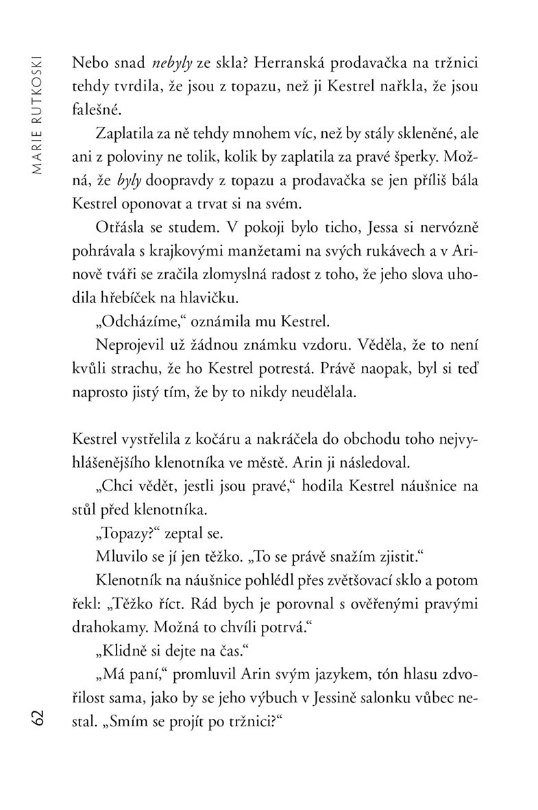 Jako dcera mocného valoriánského generála si Kestrel užívá bezstarostného života. Její osmnácté narozeniny se ale blíží a ji čeká zásadní rozhodnutí: buď se přidá k armádě, nebo se vdá.