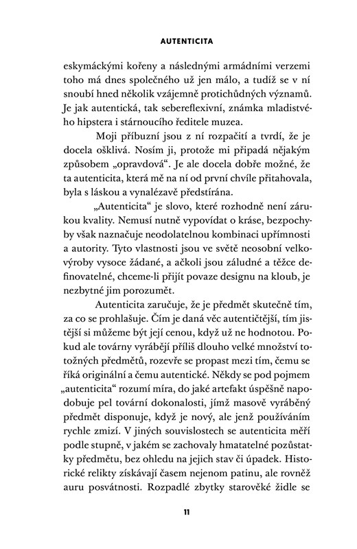 Každý den používáme předměty a pojmy, které nám připadají tak samozřejmé, že o jejich podstatě a vzniku vůbec neuvažujeme. Jezdíme auty, sedíme na židlích, píšeme na klávesnici, několikrát za den zapneme zip, vaříme v kuchyni, sledujeme YouTube, navštěvujeme muzea, nakupujeme v IKEA, používáme pojmy jako autenticita, vkus, nedokonalost, móda nebo design.