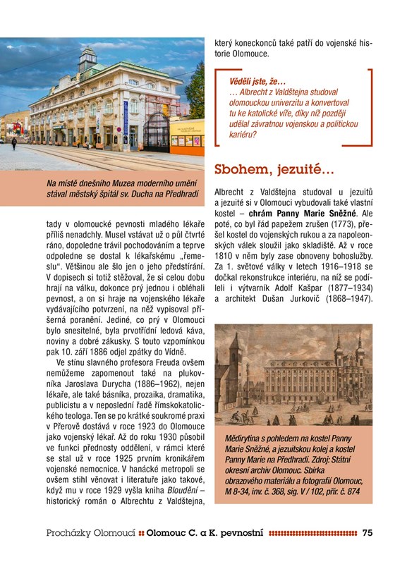 Kniha vám nabízí sedm tematických procházek Olomoucí, díky kterým odhalíte i méně známá olomoucká zákoutí. Vydejte se po stopách Habsburků, odhalte místa, která upadla v zapomnění. Objevte dochované, zaniklé, zapomenuté nebo jen našim očím rafinovaně skryté pevnostní objekty. A to je teprve začátek.