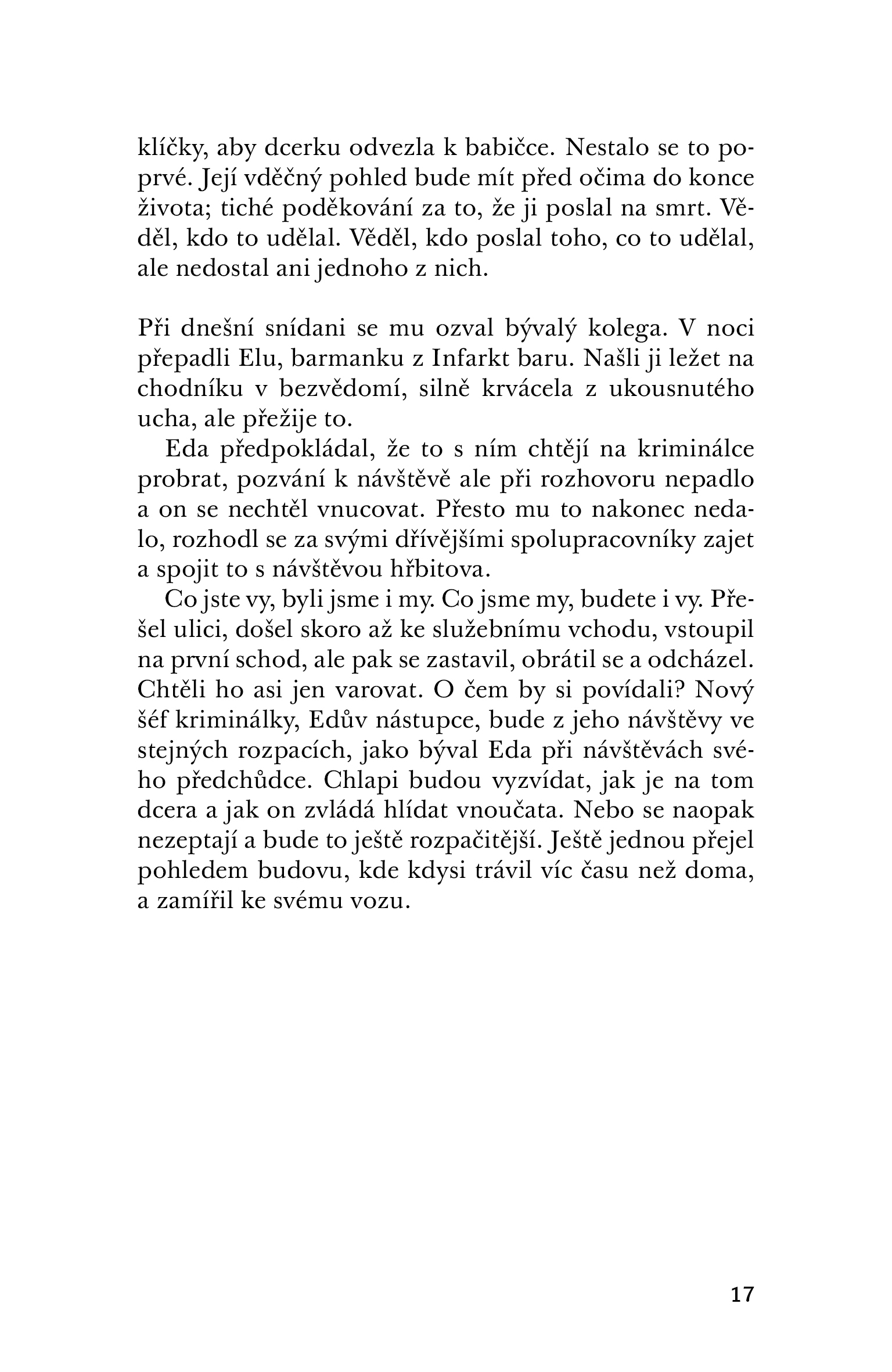 Napínavý detektivní příběh, v němž stárnoucí detektiv Eda řeší vraždy svých spolužáků, které prorůstají i do světa českého organizovaného zločinu.