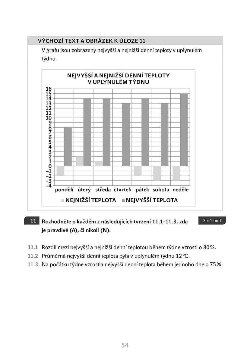 Publikace obsahuje 11 cvičných testů z matematiky. Díky nim získáš ucelenou představu o tom, jak jsou otázky formálně koncipovány, budeš se v nich proto dobře orientovat a naučíš se pracovat s jednotlivými typy úloh. Vyhodnocení odpovědí nalezneš v klíči správných řešení. Důležitou součástí titulu jsou záznamové archy a pokyny pro jejich správné vyplnění.