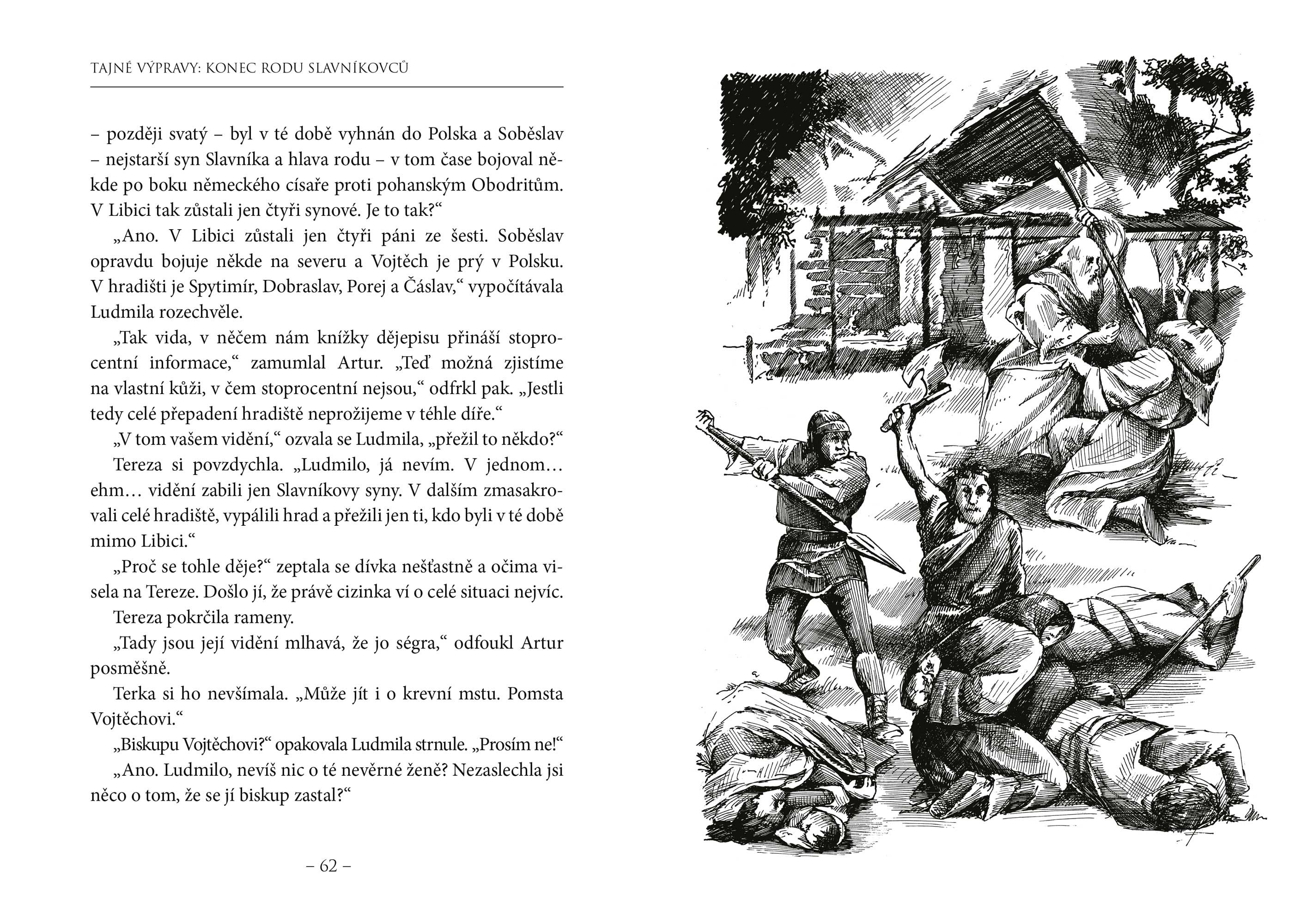 Už první kontakt s místními obyvateli vrcholí katastrofou a kamarádi skončí ve studeném žaláři neznámého hradiště. Sotva zjistí, že se jmenuje Libické a že je předvečer svátku svatého Václava roku 995, hradby se ocitnou pod útokem černých jezdců, nádvořím se rozléhá břinkot zbraní i zoufalý křik a našim průzkumníkům z budoucnosti dochází, že uniknout z této pasti nebude vůbec snadné.