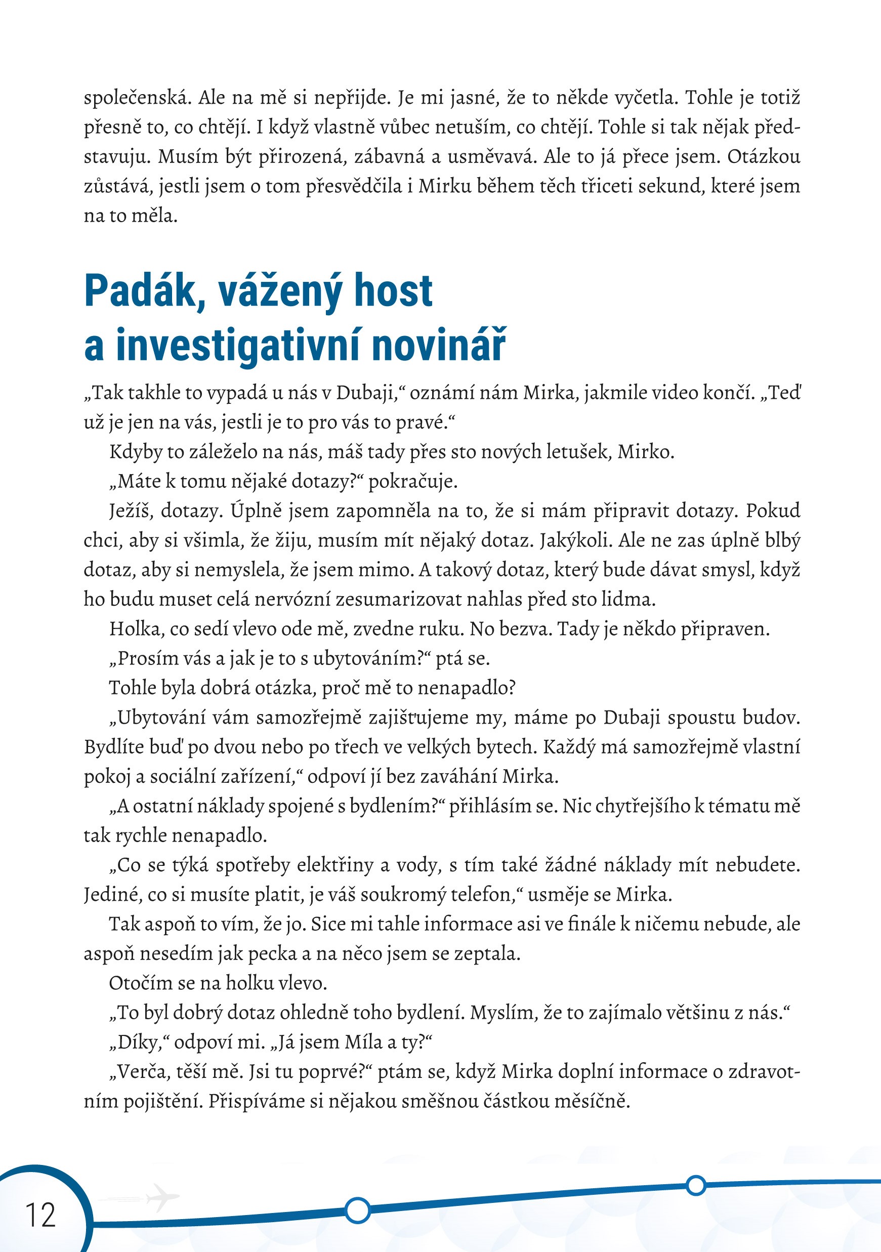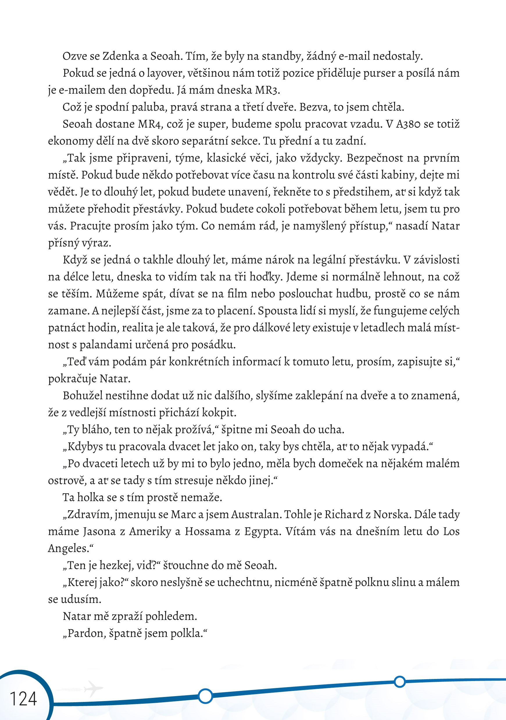 Chcete vědět, jak se žije české holce v Dubaji, jak je těžké dostat "práci snů" a proč si v Číně neobjednávat pizzu? Jste zvědaví, jaké to je pracovat pro jednu z největších leteckých společností Blízkého východu, měsíčně navštívit pět kontinentů a dostávat za to výplatu? Nahlédněte za závěs kuchyňky a pod pokličku práce letušky. Ať už se rozhodujete, jestli je tahle práce to pravé, sníte o životě v oblacích, prostě vás jen zajímá, proč sakra při vašem letu došlo to kuře nebo co se může stát, když si nezapnete pás, je tahle knížka určena právě vám.