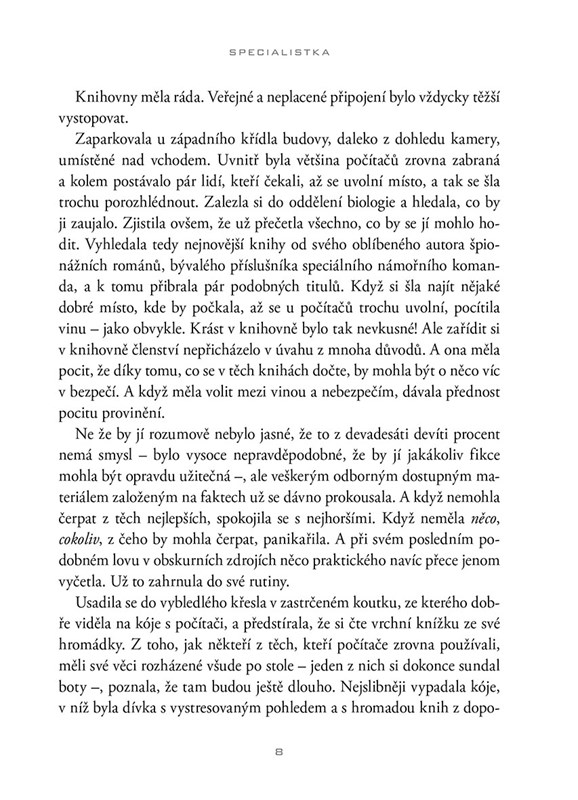 Jen málo lidí ví, že pracovala pro vládu Spojených států. Pro oddělení tak tajné, že nemá ani vlastní název. Coby výjimečná specialistka představuje zároveň jedno z nejtemnějších rizik. A tak když její zaměstnavatelé usoudí, že je pro ně nebezpečná, bez varování po ní jdou.