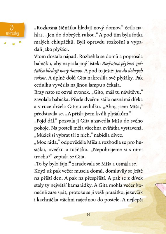 Máte na čtení tři, pět nebo osm minut? Vyberte si některý z různě dlouhých příběhů, ve kterých vystupují děti i zvířátka, hemží se to v nich čarodějnicemi, kouzelníky, piráty či princeznami.