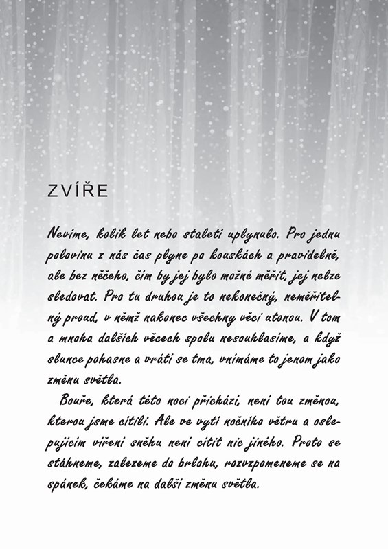 Ale ve chvíli, kdy v lesích zmizí při lovu její otec, nemá Yeva na vybranou – musí ho najít. A jediná cesta vede po stopách stvoření, které se otec snažil ulovit. Přes varování sester se vydává do lesa a stopuje Zvíře až do jeho království – zakletého údolí, zničeného zámku a světa plného stvoření, o kterých slyšela pouze v pohádkách. Do světa, který ji může zničit, nebo spasit.