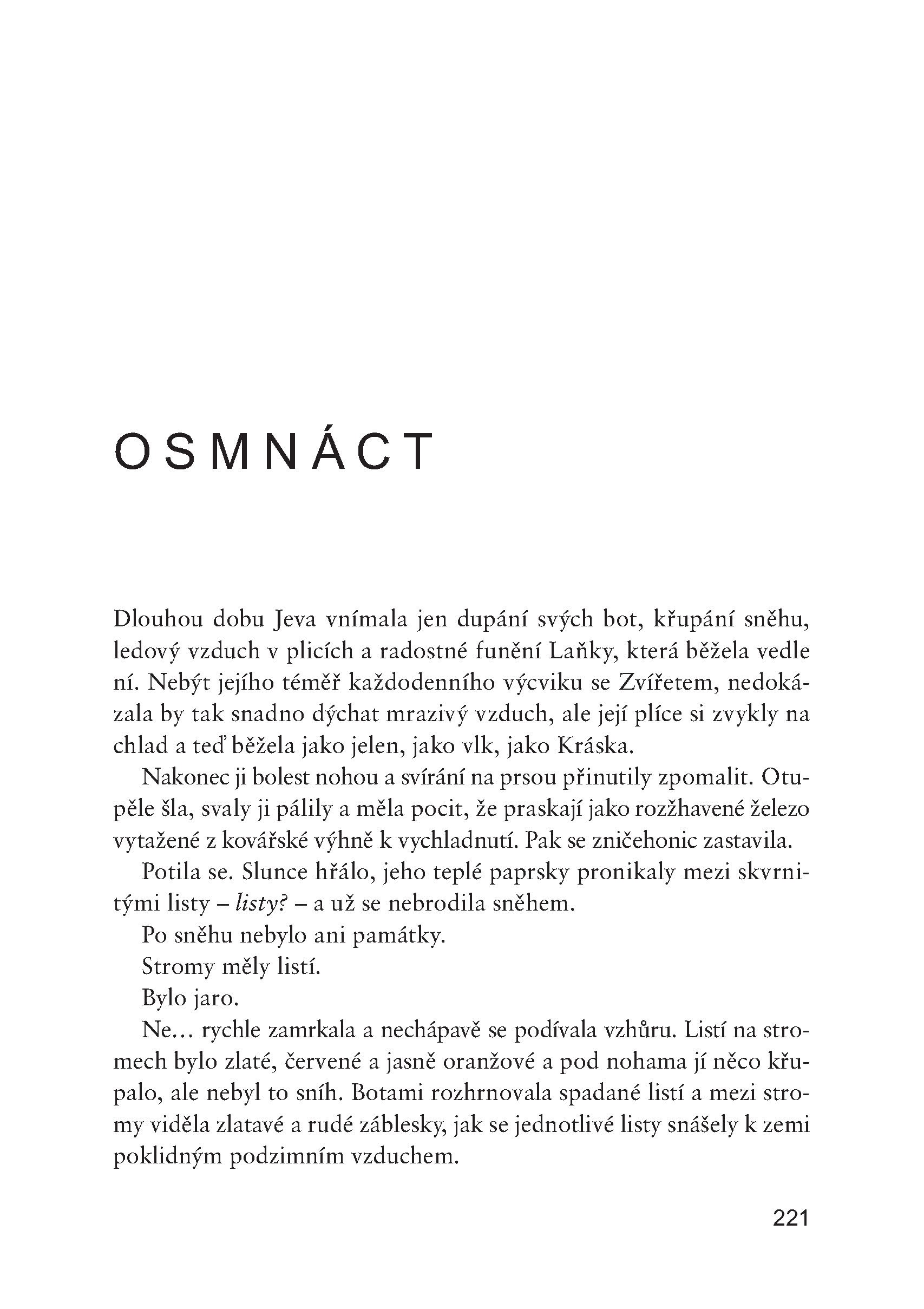 Kráska zná tajemný les lépe než kdokoli jiný. Cítí ho ve své krvi. I když vyrostla mezi šlechtici daleko od lesa, ví, že temný hvozd skrývá tajemství, která dokáže odhalit jen pravý lovec. Když její otec přijde o všechno jmění a Yeva se musí společně se sestrami odstěhovat pryč z města, uleví se jí. Uprostřed divočiny se nemusí přetvařovat a usmívat se na bohaté dámy – nebo se vdát za bohatého šlechtice….