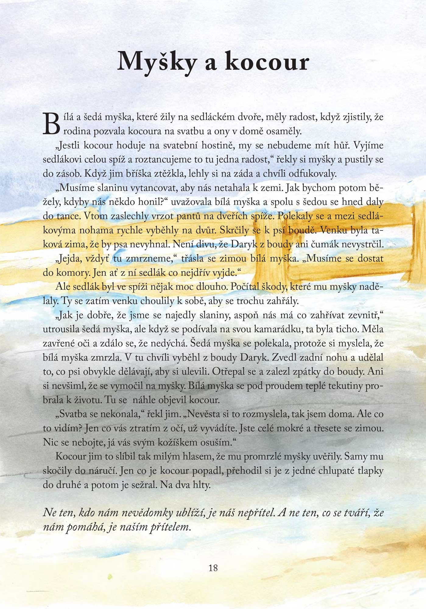 Seznámí je například s udatným pštrosem, nevděčným vlkem, neposlušným velbloudem, zvědavou labutí a spoustou dalších zvířátek.