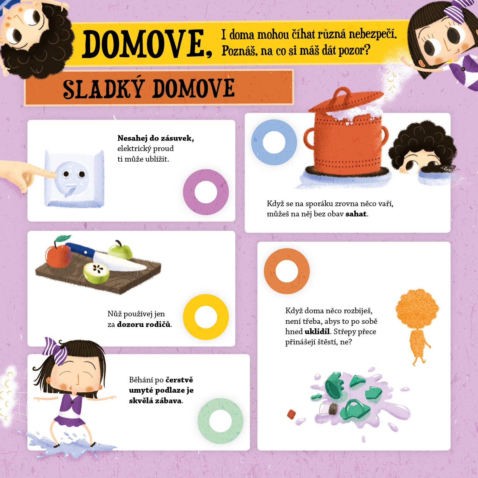 Umíš se chovat ohleduplně k ostatním lidem? Dáváš pozor na to, abys neohrozil sebe ani ostatní? Že ano?! Tak schválně…Otevři knížku, vezmi papír a zkus si odpovědět na jednoduché kvízové věty. Potom zatáhni za táhlo a zkontroluj své odpovědi. K tomu si můžeš pohrát s veselými ilustracemi, které můžeš dle libosti měnit na správné a špatné situace. Zábavná veselá kniha plná obrázků a úkolů tě naučí bezpečnému chování ve všech možných situacích. Nevěříš? Vyzkoušej a uvidíš.