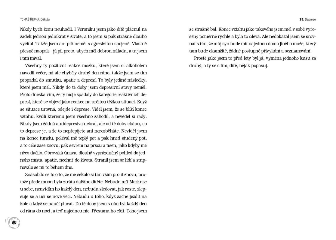 „V jednu chvíli jsem byl král a měl všechno, pak přišla jedna rána za druhou a já o vše důležité přišel,“ říká Tomáš Řepka. „Patřilo mi to.“ Neuvěřitelný životní příběh drsného fotbalisty. Ve své třetí knize vypráví o tom, co všechno získal a ztratil, jak se zvedal a kdo mu pomohl zjistit, co je opravdu podstatné. Novinářka Jana Ciglerová potkala Tomáše v období, kdy napravoval svoje hříchy a stavěl svůj život znovu a jinak. Ve svém vyprávění se vrací k dramatickým momentům, které tak nečekaně ovlivnily jeho další osud.