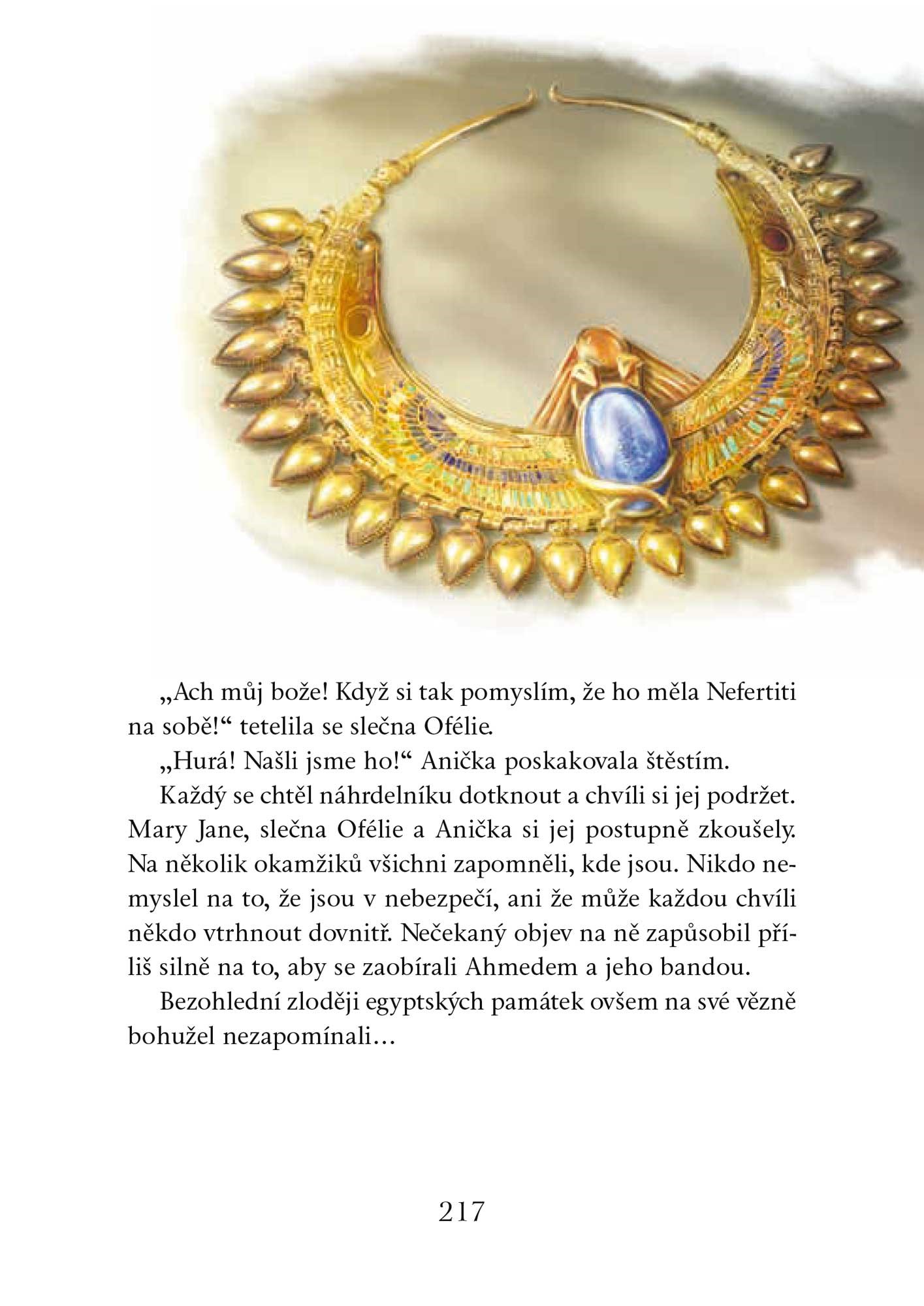 Anička s Barťasem nemůžou uvěřit svému štěstí. Odjíždí za svými rodiči do Egypta, kam byli povoláni k novému archeologickému objevu. Tajemná hrobka však nechce své tajemství vydat a děti brzy zjistí, že budou muset záhadu vyřešit na vlastní pěst. Bylo snad odkryto místo odpočinku krásné Nefertiti? Kdo všechno zná zapomenutou legendu a kdo odnesl sarkofág z hrobky?