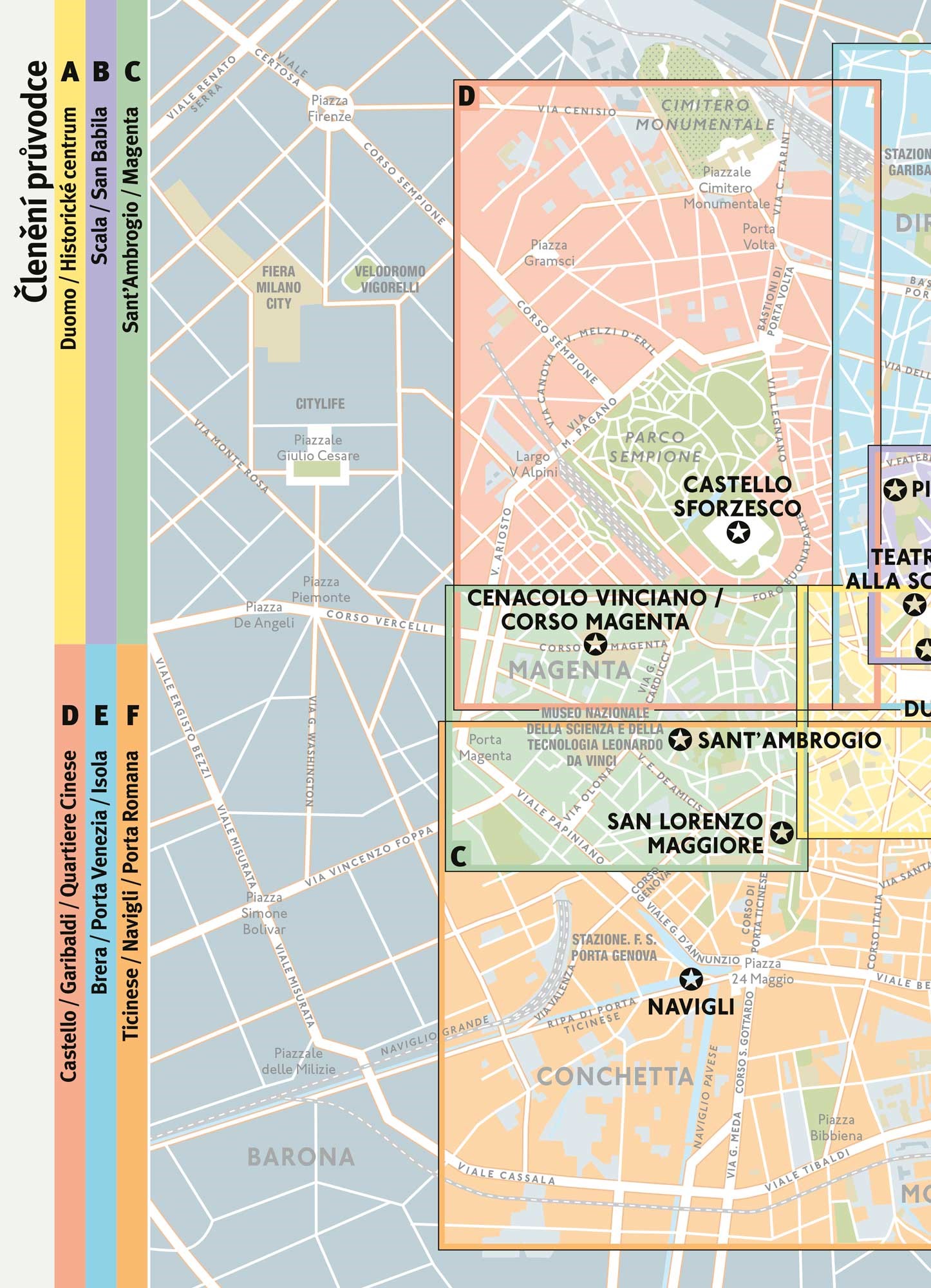 Uvnitř rozkládací mapky městských čtvrtí, na nichž vše snadno najdete