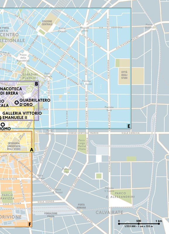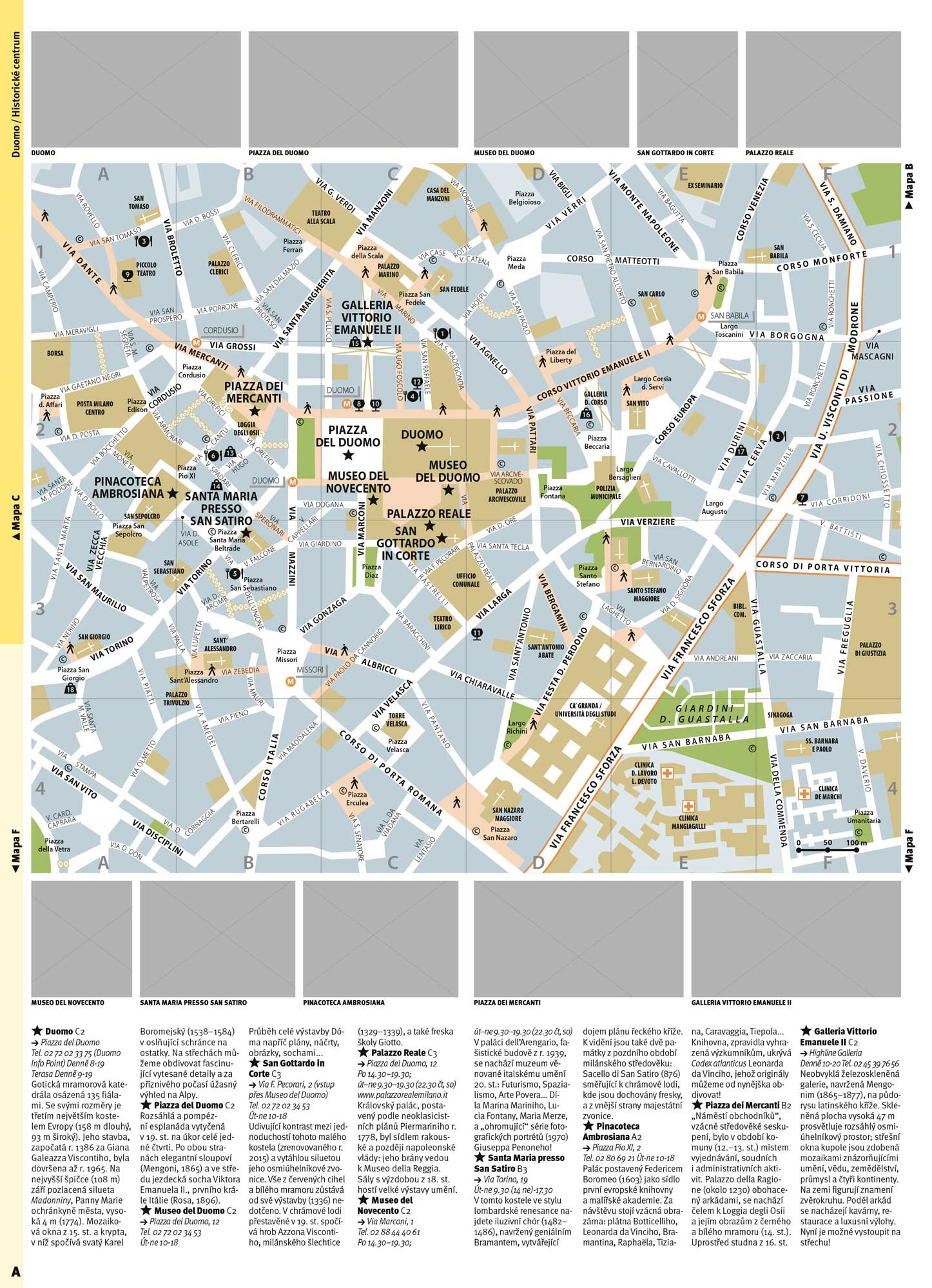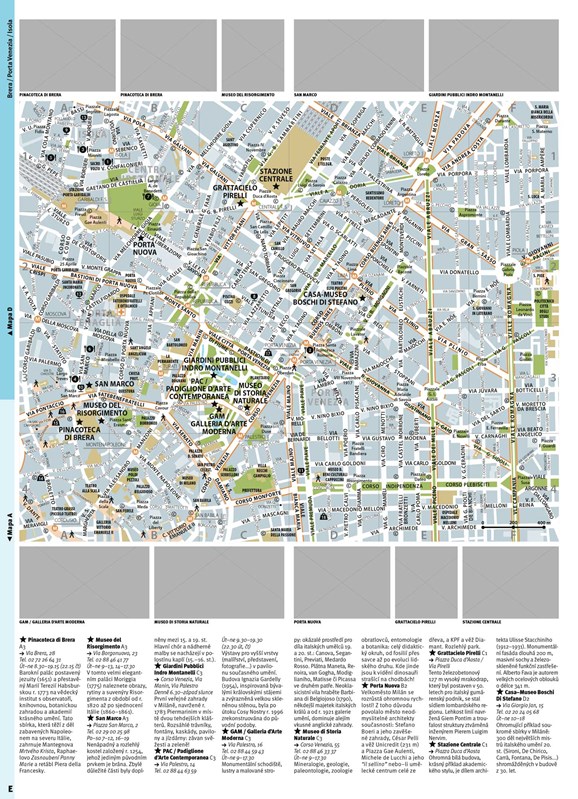 * Unikátní koncept: velká podrobná mapa, rozdělená na rozkládací mapky městských čtvrtí, v nichž vše snadno najdete