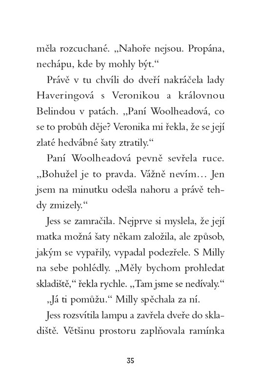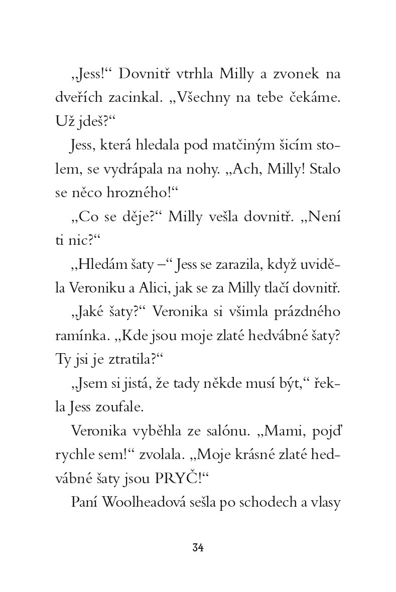 Dvě kamarádky, jedny ztracené šaty a pachatel na útěku. Druhý díl napínavé série pro malé čtenářky, které mají rády napětí, dobrodružství, ale i krásné oblečení.