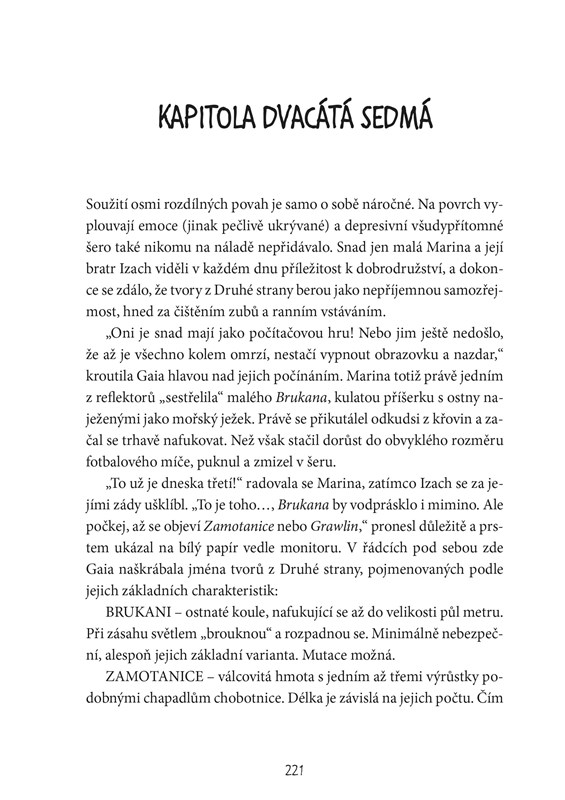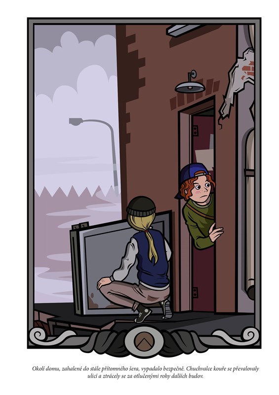 Soumrak se vznášel nad rozpraskaným asfaltem ulice a suchý vítr po ní hnal chomáče šedého kouře. Vraky aut, podobné ohořelým kostlivcům, výhružně cenily střapatý plech, pomačkaný prudkými nárazy. Nebylo slyšet ani zpěv ptáků (kde by se tady také vzali) a jen hučení v kanálech dávalo tušit, že Svět dnes žije v úplně jiných dimenzích…