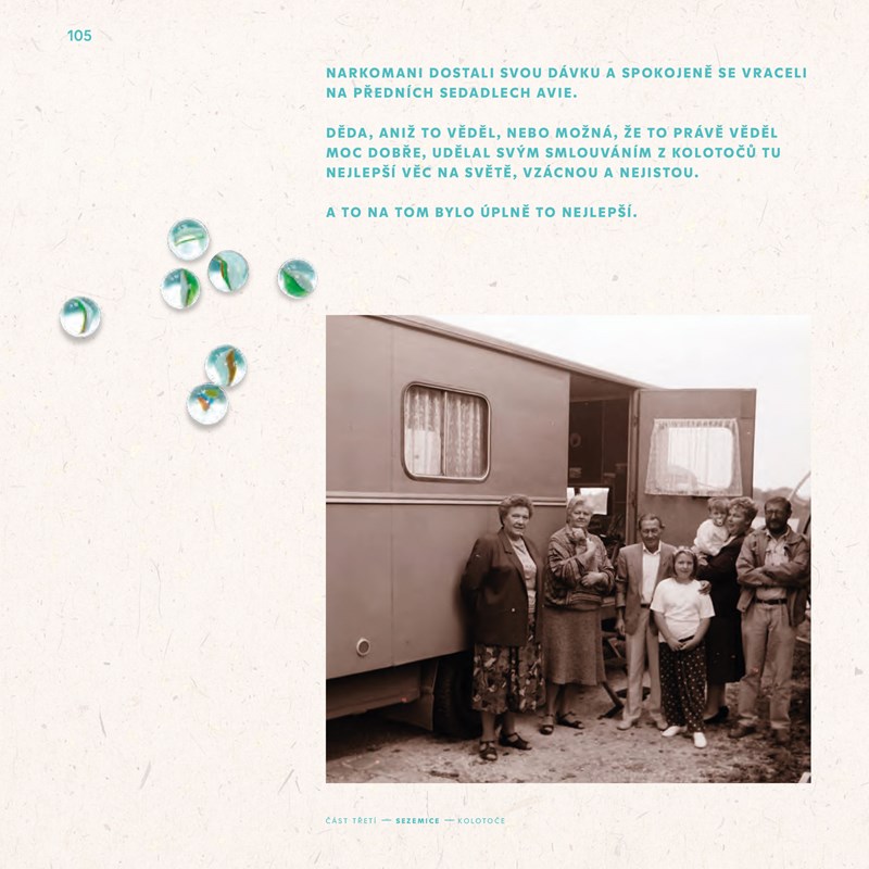 Dětství, to jsou hlavně prázdniny, babičky a dědové, ale taky videopůjčovny, tamagoči a Kačeří příběhy – aspoň pro nás děti devadesátek. Každá rodina má své příběhy a tohle jsou zápisky té moji. Jsou to vzpomínky, nad kterými se usmívám a jenom sem tam se nostalgicky dojmu – třeba nad tím, jaký to bylo retro, ty časy, kdy se seznámili naši, a ještě předtím v šedesátkách jejich rodiče. A všechno je to na fotkách! Tohle je kniha napůl moje a napůl Elišky. Její ilustrace jsou na každé straně, a proto se ta kniha nečte. Ona se prohlíží, prožívá a nasává všemi smysly.