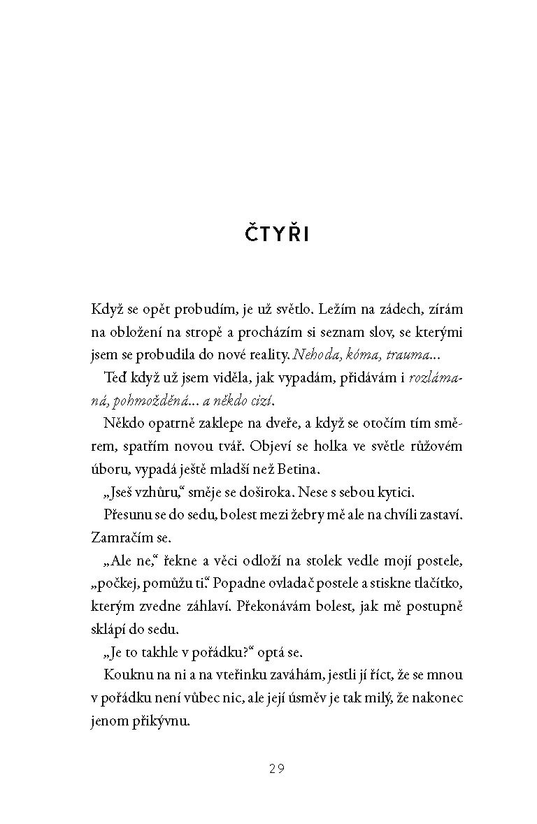 Když se Olivia probudí z kómatu, zjistí, že ztratila paměť. Nevzpomíná si nejen na tu autonehodu, ale na nic za poslední čtyři roky, na střední školu nebo svého kluka Matta. Ta nehoda jí sice nevzala život, ale sebrala jí něco stejně živého a důležitého – paměť. Čím víc se snaží si vzpomenout, tím víc se ztrácí v mlze a najednou neví, kým je, když jí všichni dokola opakují, kým byla. Olivia musí najít své místo v životě, který si ani nepamatuje, že by žila, a zjistit, kým je teď.