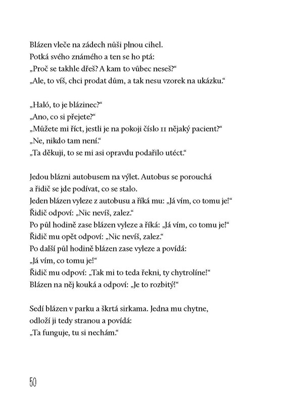 Nejlepší vtipy pěkně pohromadě, navíc s ilustracemi Petra „Pivrnce“ Urbana. Znáte třeba tenhle? „Včera jsme se s manželkou pohádali, ale stejně jsem měl poslední slovo já.“