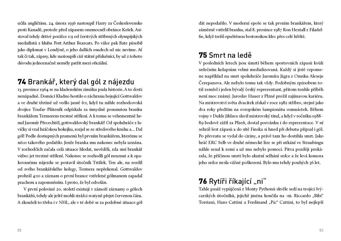 Jak může obyčejný fotograf ovlivnit hokejové utkání? Jaká je největší krádež v dějinách ledního hokeje? Který komentátor kleje ze všech nejvíce a který brankář drží prvenství v nejmenším vzrůstu? To všechno a ještě mnohem více odhaluje Tomáš Kučera ve své knize zapomenutých, mnohdy zcela neznámých pikantností z prostředí nejoblíbenějšího ledního sportu na světě.