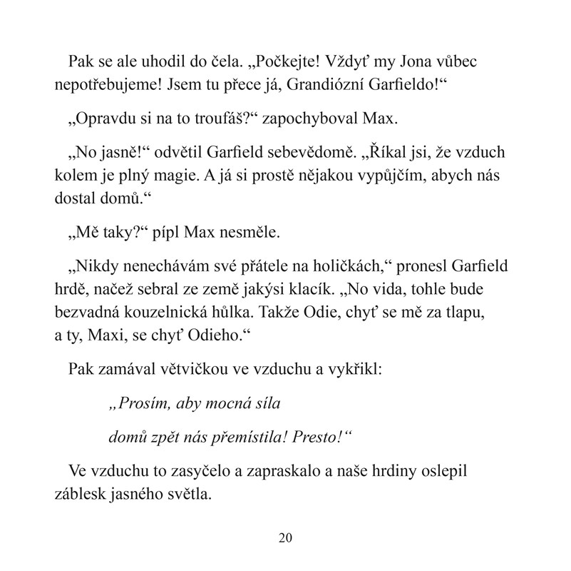 Galavečer pro charitu se blíží a s ním i Jonovo kouzelnické vystoupení. Jonovi ale kouzlení zrovna moc nejde, a tak se Garfield rozhodne vzít vše do svých rukou. Nevede si však o moc lépe než jeho páníček – jeho jediným počinem je zmizení Odieho do záhadné Zóny kouzel.