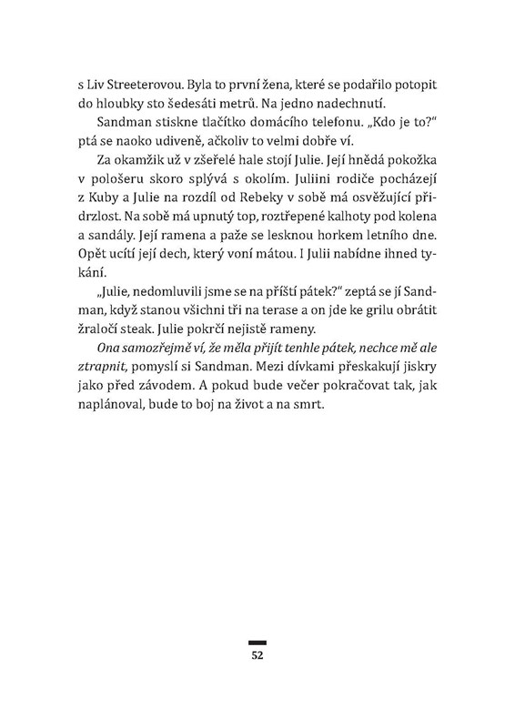 Targa Hendricksová nemá přátele, rodinu ani lásku. Dokonce ani strach. Nemá nic, co by mohla ztratit. Proto je tak dobrá v tom, co dělá. Jako tajná agentka chytá sériové vrahy přímo při činu. Jenže existují jen dva způsoby, jak uspět – stát se jejich obětí, nebo je přesvědčit, že je stejná jako oni. Další, koho musí Targa dostat, je univerzitní profesor psychologie posedlý nahráváním posledních slov svých obětí. Uvěří tajné agentce? Kdo ve hře na život a na smrt zvítězí?
