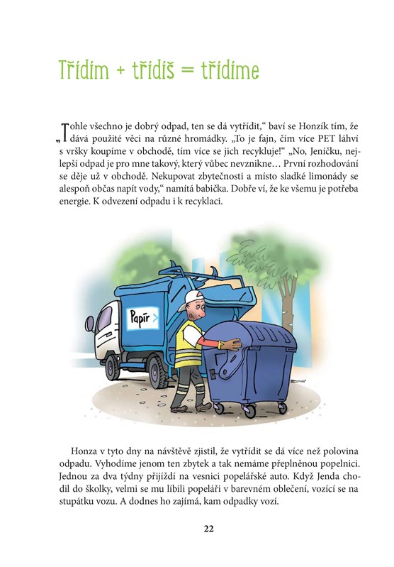 Honzík rád navštěvuje babičku a dědečka, kteří ho vlídně provázejí při cestách za poznáním okolí. Tentokrát se Honzík společně s kamarádem Tondou snaží zjistit, kde se bere tolik odpadu a zda je možné ho znovu účelně využít. Babička i dědeček chlapcům vysvětlují, proč a jak se má odpad třídit. Honzík pomůže dědečkovi odvézt nepotřebné věci do sběrného dvora. Přivítá také návštěvu třídírny odpadu, kde se dozví o tom, jakými způsoby se dá odpad znovu využít. Na zahradě Honzík vidí, jak se babička a dědeček starají o kompost, a zjistí, k čemu je to užitečné. Po této návštěvě u prarodičů už Honzík přemýšlí jinak – doma dbá na třídění odpadu a ví, že nejlépe přírodě pomůže, když nebude s ničím plýtvat.