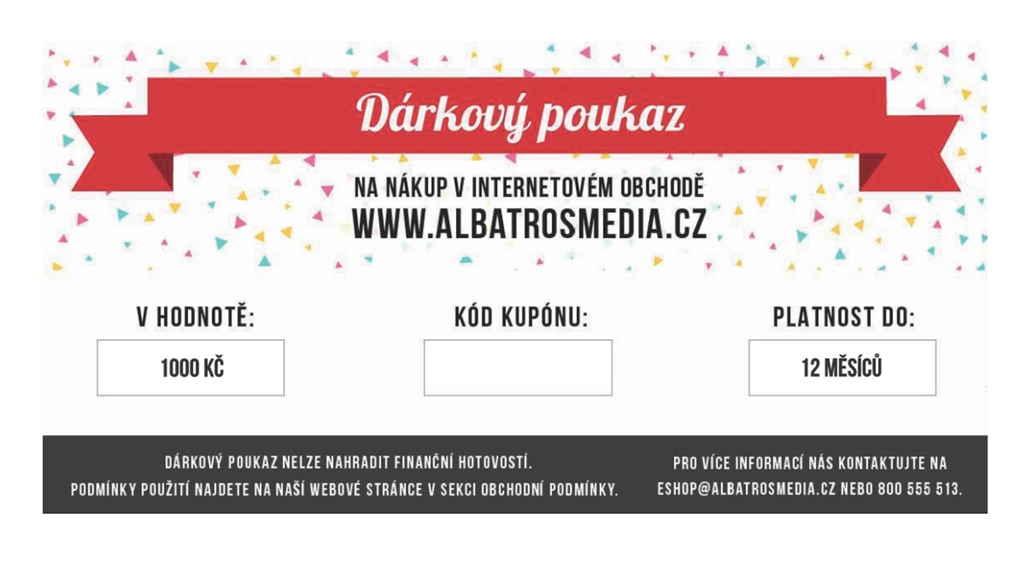 Elektronický dárkový poukaz v hodnotě 500 Kč je určen k úhradě objednávky na www.albatrosmedia.cz. Platnost poukazu je 12 měsíců od jeho vystavení a doručíme vám jej e-mailem ihned po zaevidování platby jako PDF soubor. Poukaz pak můžete vytisknout nebo jej jednoduše přeposlat e-mailem dál. V jedné objednávce je možné použít pouze jeden elektronický dárkový poukaz.