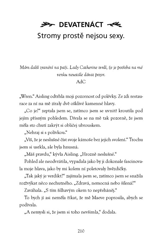 Každé Vánoce Wren v lesích kolem vesnice pronásledují mocní nepřátelé její augurské rodiny – soudci. Ona sama ani nikdo z augurů v okolí je nedokáže zastavit, a navíc hrozí, že soudci získají veškerou moc a zvítězí v prastaré válce. V zoufalé snaze všechny zachránit se Wren vydává na tajnou misi do sídla nepřátel jako stážistka pracující pro soudkyni Cassu Harknessovou. Ve spleti lží a podvodů bude Wren brzy muset volit mezi záchranou sebe samé nebo zkázou všech augurů.