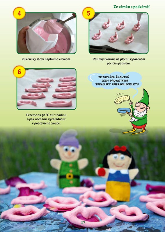Podávat se budou jak pokrmy přiměřeně slané (chlebíčky, jednohubky, saláty apod.), tak i lahodné sladkosti (cukroví, poháry, dortíky, koláče apod.) a chybět samozřejmě nebudou ani osvěžující nápoje. Nemějte obavy, protože všech 24 receptů na dobroty s pohádkovou tematikou je opatřeno jednoduchým fotonávodem „krok za krokem“, díky kterému vše hravě zvládnete připravit sami nebo s malou pomocí dospěláka.