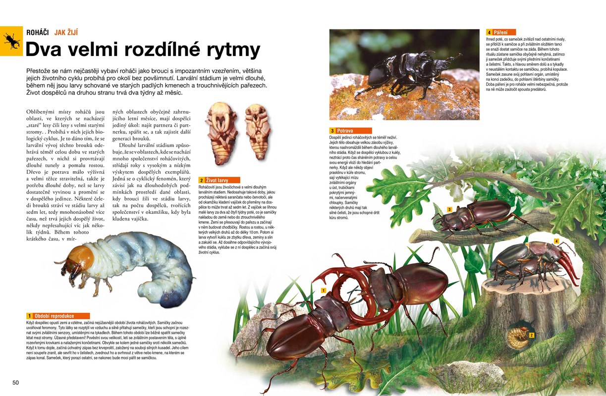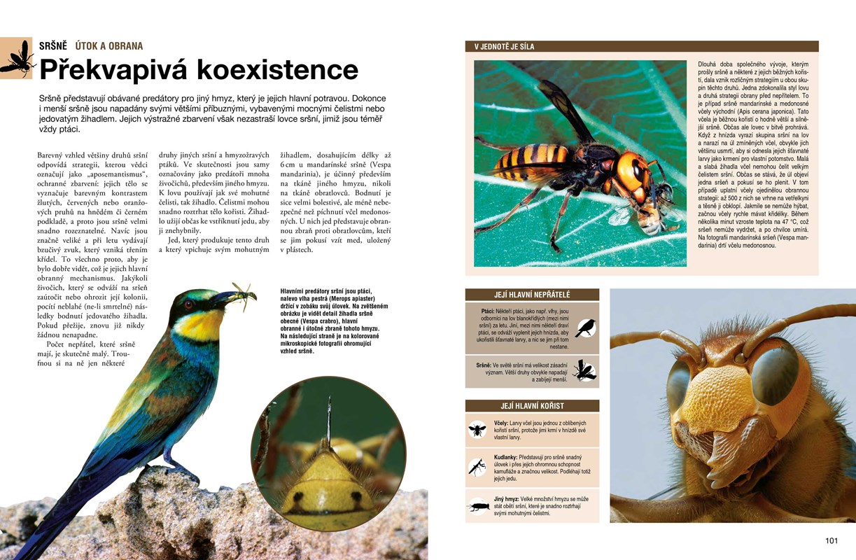 V této fascinující knize se dočteš nejzajímavější fakta ze světa pavouků a hmyzu. Detailní ilustrace a nádherné fotografie ti prozradí jejich skrytá tajemství a umožní pohled do prostředí, v nichž žijí, třeba do vnitřního prostoru mraveniště či úlu.