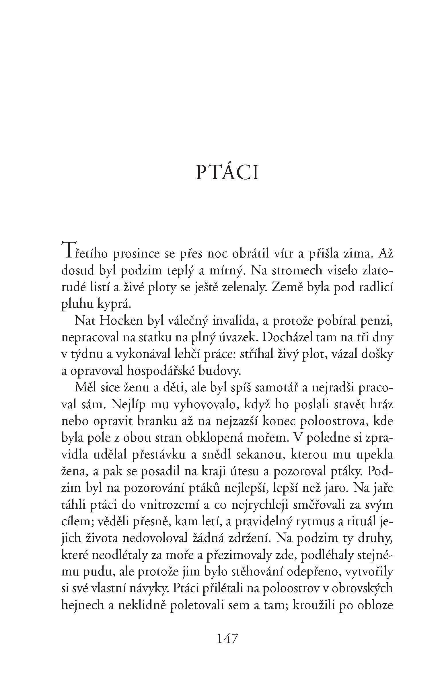Klasická hororová povídka Ptáci, proslavená nesmrtelným Hitchcockovým filmem, a další hrůzostrašné příběhy v této sbírce stále vzbuzují ve čtenáři pocity strachu a mrazení v zádech. Povídky o marném boji člověka s osudem i přírodou, po jejichž přečtení si dobře rozmyslíte, kam pojedete na dovolenou a s kým se tam budete bavit, zda podstoupíte operaci očí či pokácíte starý strom ve vaší zahradě, a varování z rádia začnete brát vážně.