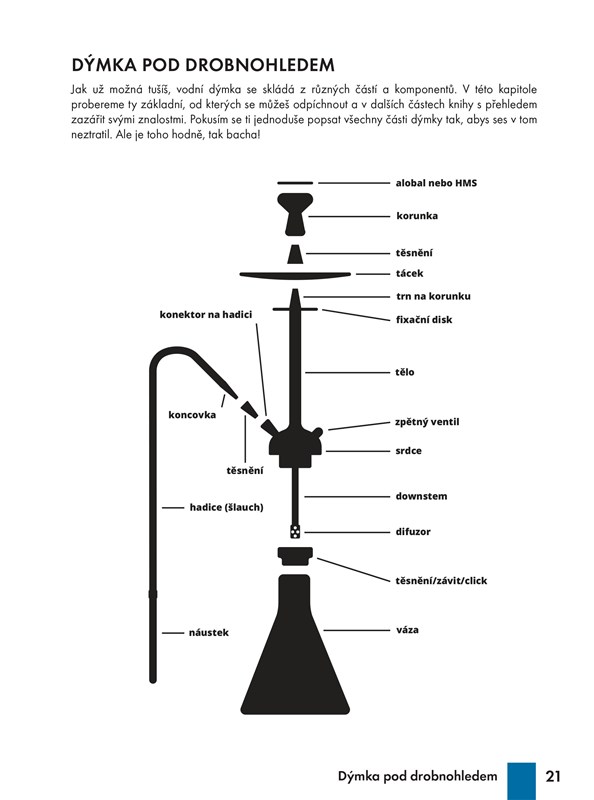 Čeká tě dobrodružství plné praktických rad, návodů a poznatků, které jsem za více než 10 let nashromáždil každodenním dýmkařením a aktivitou v mnoha oblastech dýmkařského průmyslu v České republice i zahraničí. Provedu tě historií, vysvětlím ti funkci i význam všech částí vodní dýmky, naučím tě přípravě, mixologii i dýmkařské etiketě a mnoha dalším fíglům. Ať už dýmkařem jsi, nebo se jím teprve staneš, tohle je kniha pro tebe.