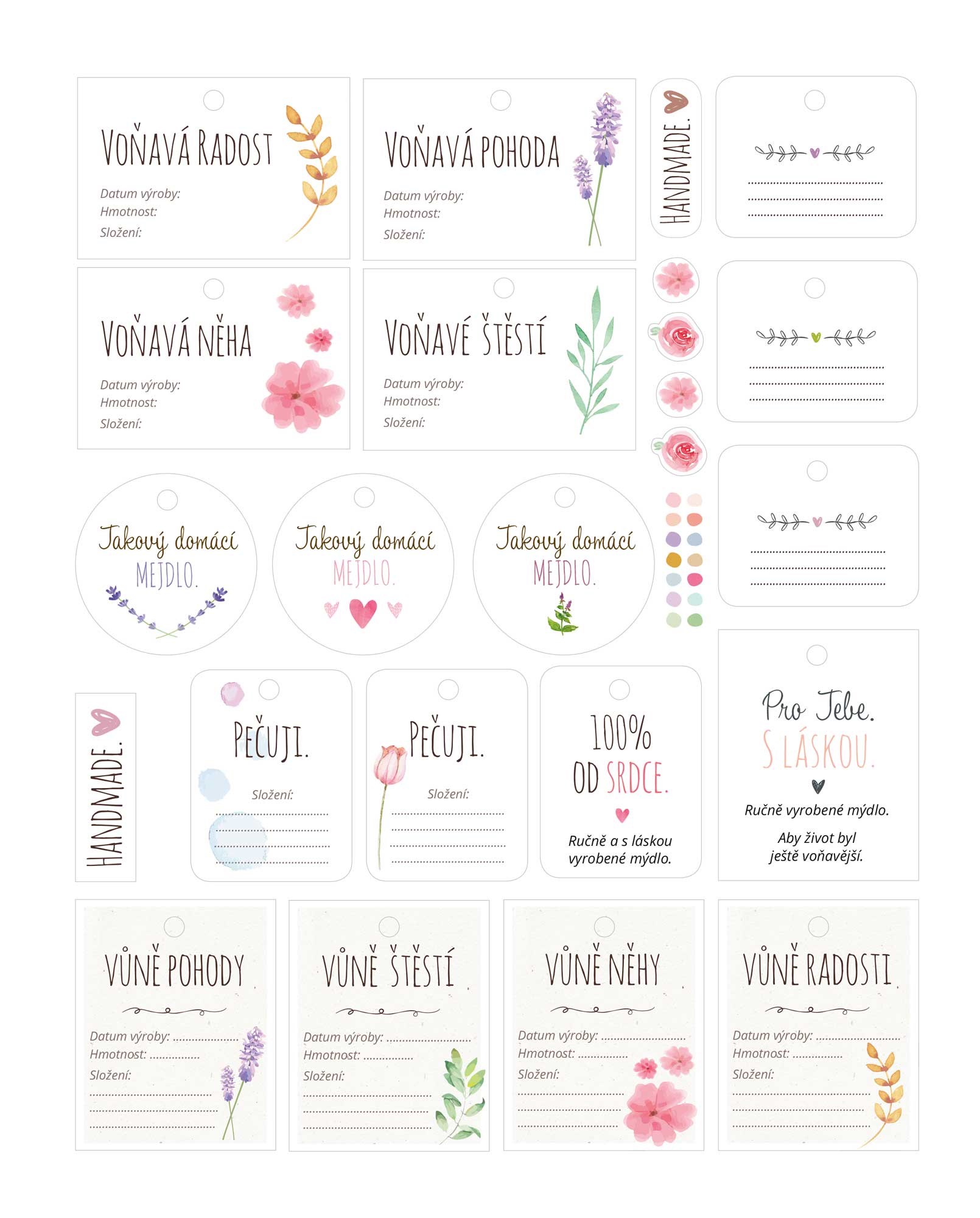 * 4 papírové archy s 80 rozkošnými mýdlovými etiketami