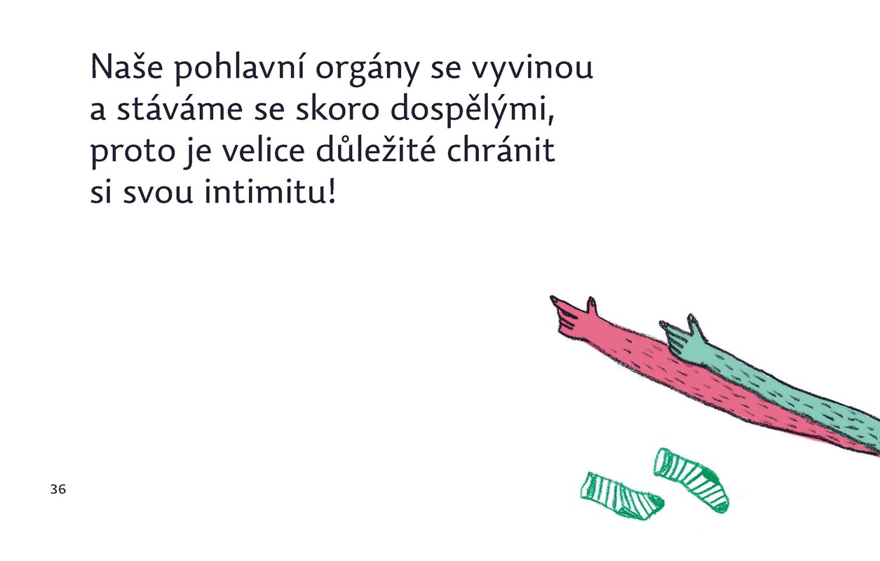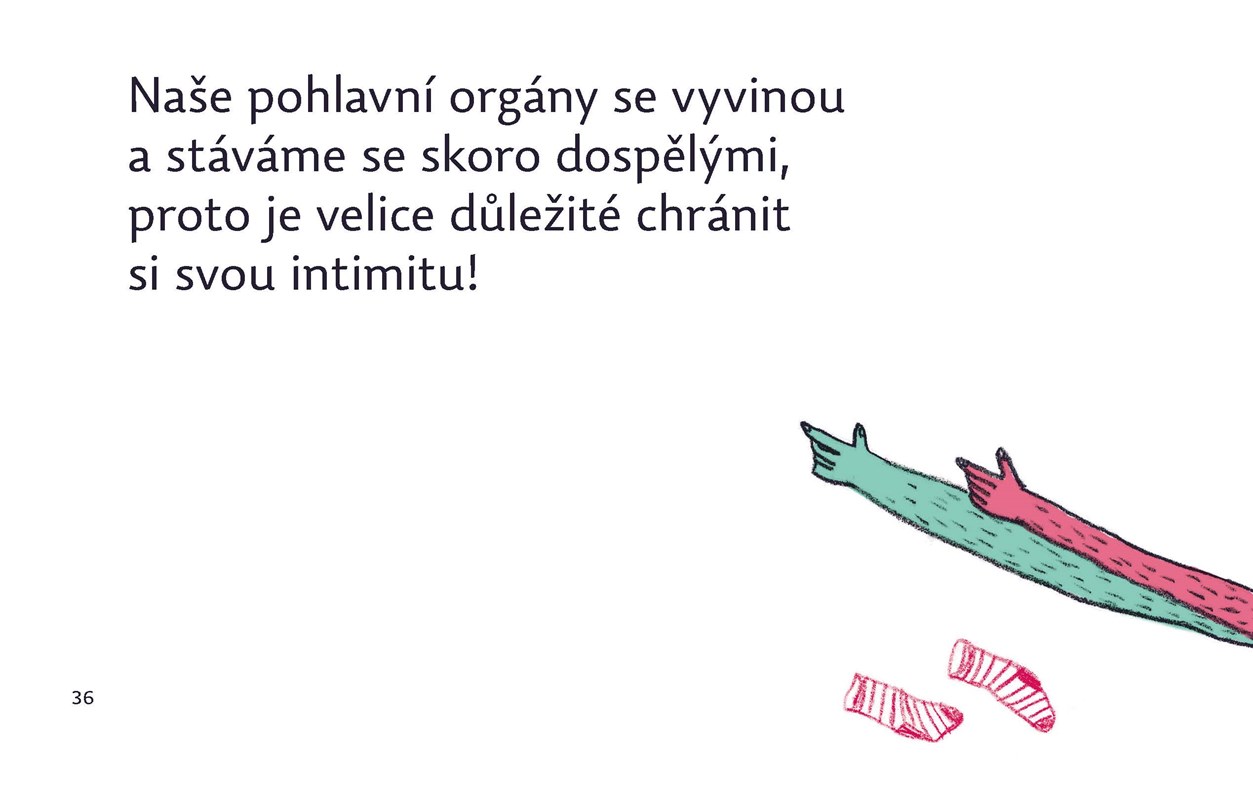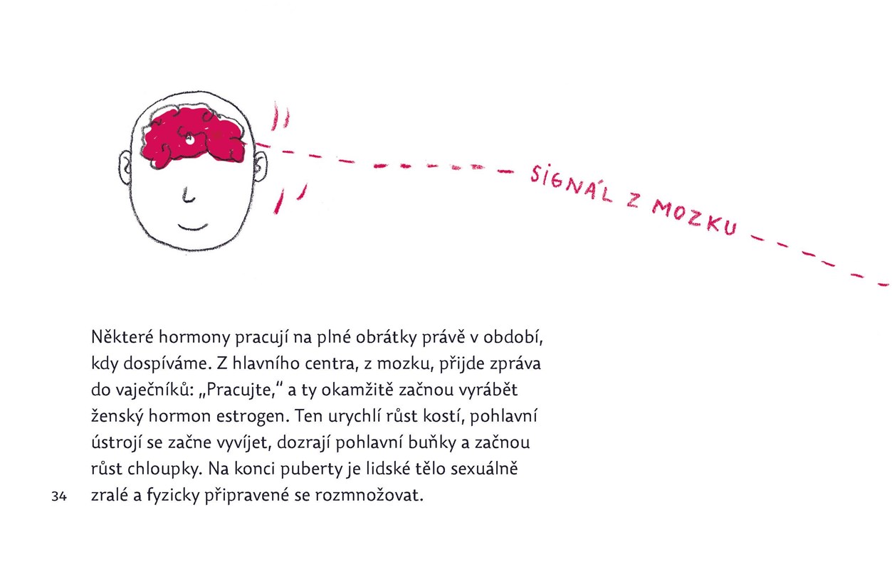 Tato ilustrovaná sexuální výchova, autorská publikace Terezy Bartošové, je určena dětem od 10 let. Její zvláštností je to, že je oboustranná - čtení pro chlapce je z jedné strany, pro dívky z druhé. Než se uprostřed knihy sejdou, dozví se, jak fungují hormony, jak se tělo v pubertě mění, s čeho sestává pohlavní ústrojí, jak probíhá rozmnožování u rostlin, jak u zvířat a jak u lidí. Některé stránky jsou totožné, jiné se - v závislosti na pohlaví - liší. Text doplňují autorčiny názorné kresby.