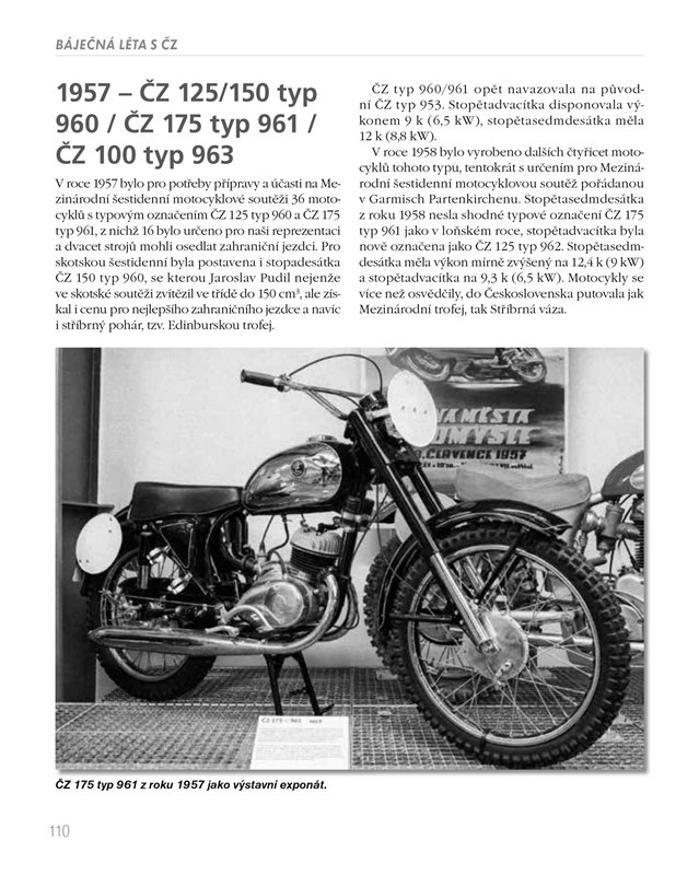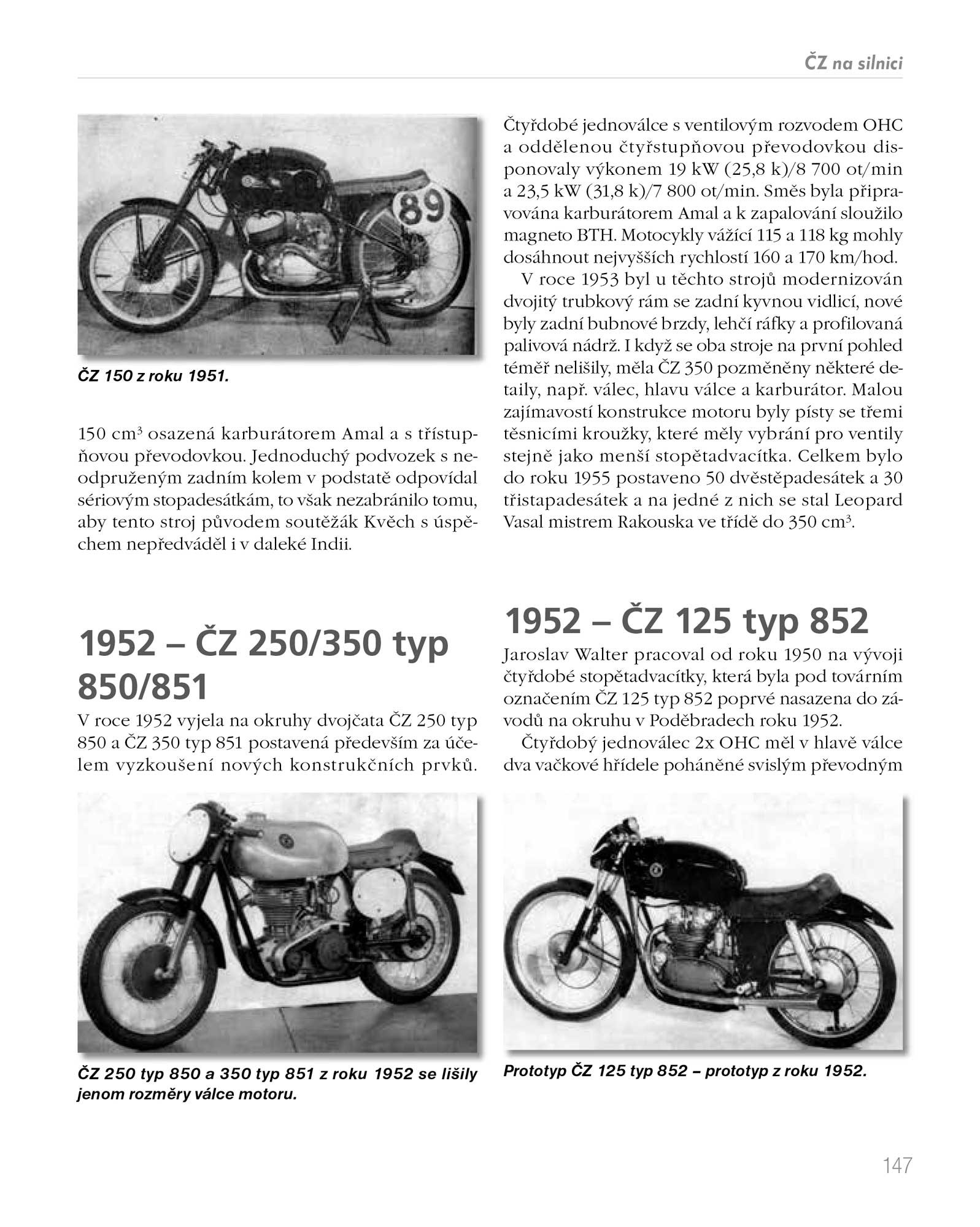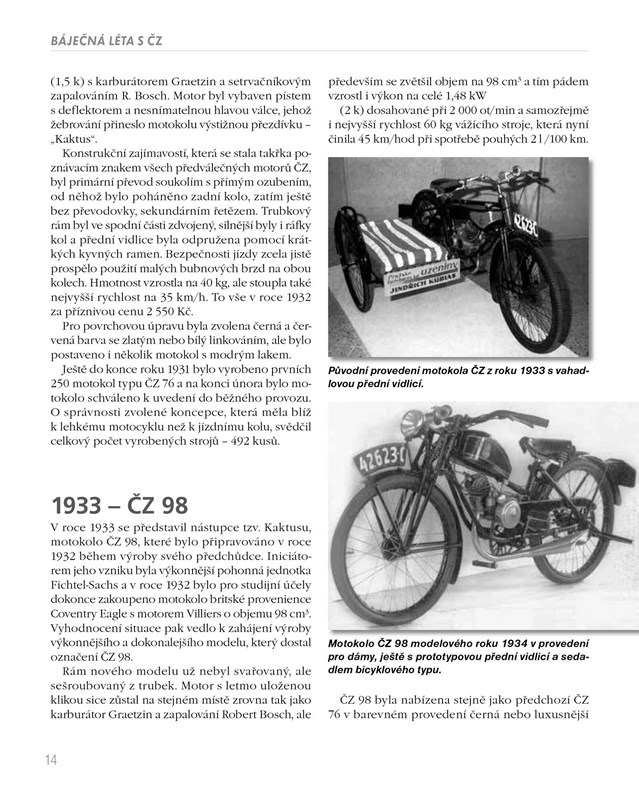 Kniha, která potěší všechny příznivce jedné stopy a zvláště pak fandy legendární strakonické značky ČZ. Chronologicky seřazená historie a popis jednotlivých modelů napříč celým výrobním spektrem – od cestovních motocyklů přes prototypy, malé motocykly, závodní a soutěžní stroje – vás podrobně a čtivou formou seznámí se značkou, která již bohužel odešla do motocyklového nebe, ale v srdcích příznivců a pamětníků bude žít navždy.