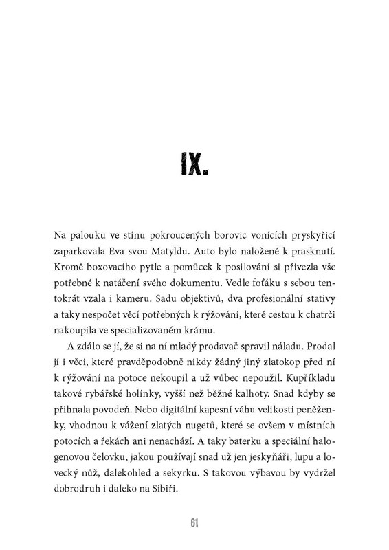 Setkání s mladými zlatokopy a nález zapomenutého deníku v opuštěné chatrči přivedou Evu, šampionku v MMA a studentku dokumentaristiky, na skvělý nápad – vydá se po stopách tajemného zlatokopa 0.0. z deníku a natočí dokument o neštěstí, které jeho kamarádům přineslo rýžování zlata. Jakmile se však o svůj dokumentární záměr podělí se svým strýčkem – majitelem internetové televize, který o záhadu projeví neobyčejný zájem – zlatá horečka se najednou stane tím posledním, čeho by se mladá dobrodružka měla bát.
