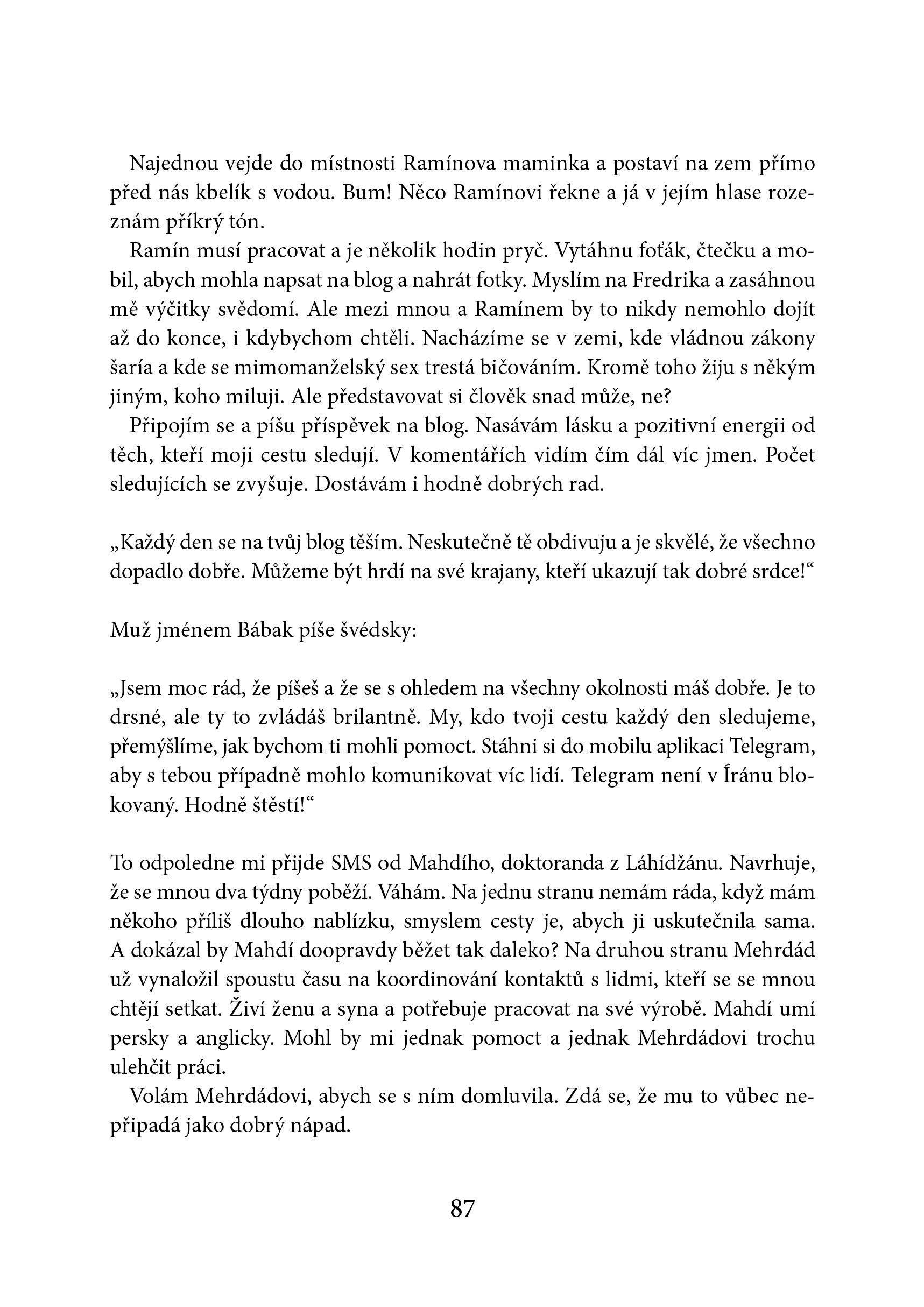 Příběh ženy, která se rozhodla postavit vlastnímu strachu, společenským předsudkům i zažitým stereotypům. Příběh ženy, která sama přeběhla Írán.