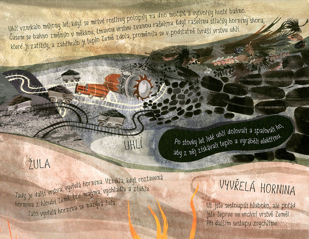 Objevte svět, který se skrývá pod povrchem! Úžasně ilustrovaná rozkládací kniha odhalí, co všechno se skrývá pod zemí.