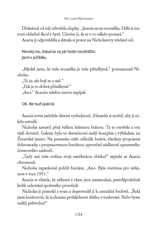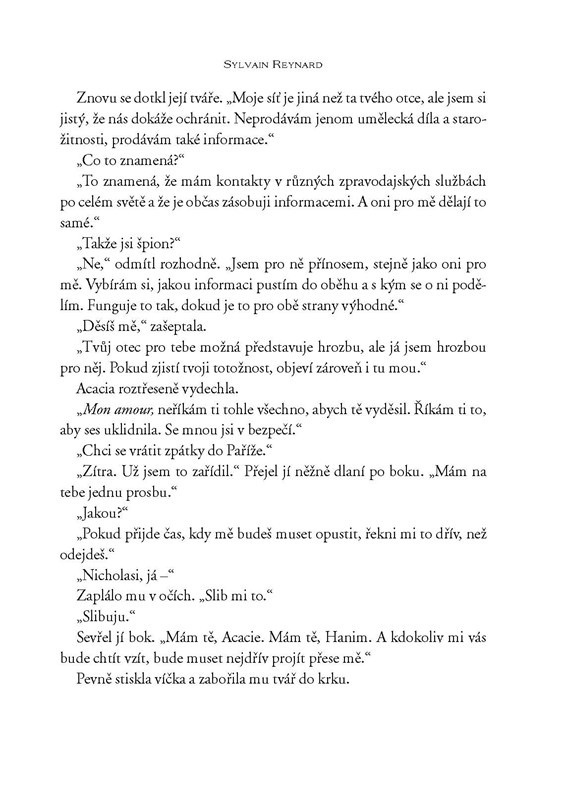Acacia si buduje kariéru v prestižním hotelu Victoire, kde pečuje o ty nejvlivnější hosty. Když se poprvé setká se záhadným Nicholasem Cassirerem, je jí jasné, že přesvědčit ho o svých schopnostech bude tvrdý oříšek. Přestože jí zadává jeden nesplnitelný úkol za druhým, Acacia se nenechá odradit a brzy si získá jeho důvěru. A když jí kvůli nedorozumění hrozí výpověď, přijme Nicholasovu pracovní nabídku a vstoupí do světa umění i nebezpečných tajemství…