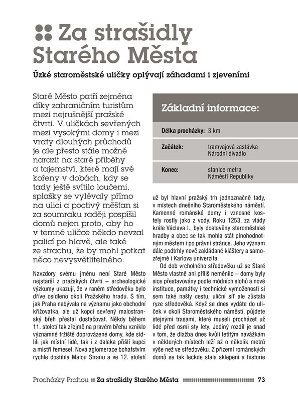 Kniha vám nabízí dvanáct tematických procházek Prahou, díky kterým se podíváte nejen na známá turistická místa, kde lze ale přesto narazit na nečekané souvislosti, ale odhalíte i méně známá zákoutí, zastrčené uličky a poklidné okrajové části města. Projděte se prvorepublikovými pasážemi, vydejte se za strašidly Starého Města, odhalte místa spojená s Kelty, vystoupejte na význačné pražské vrchy a sestupte do podzemí.